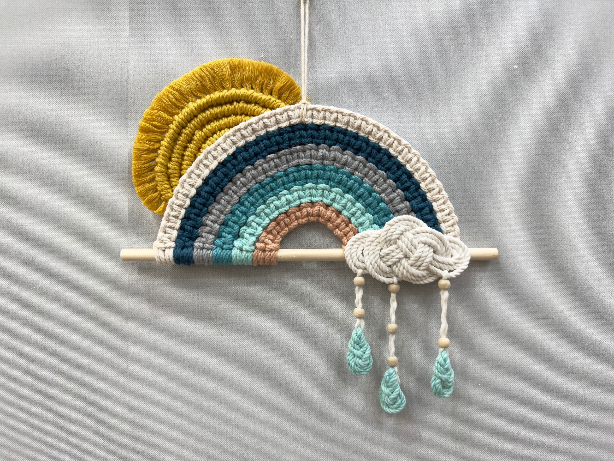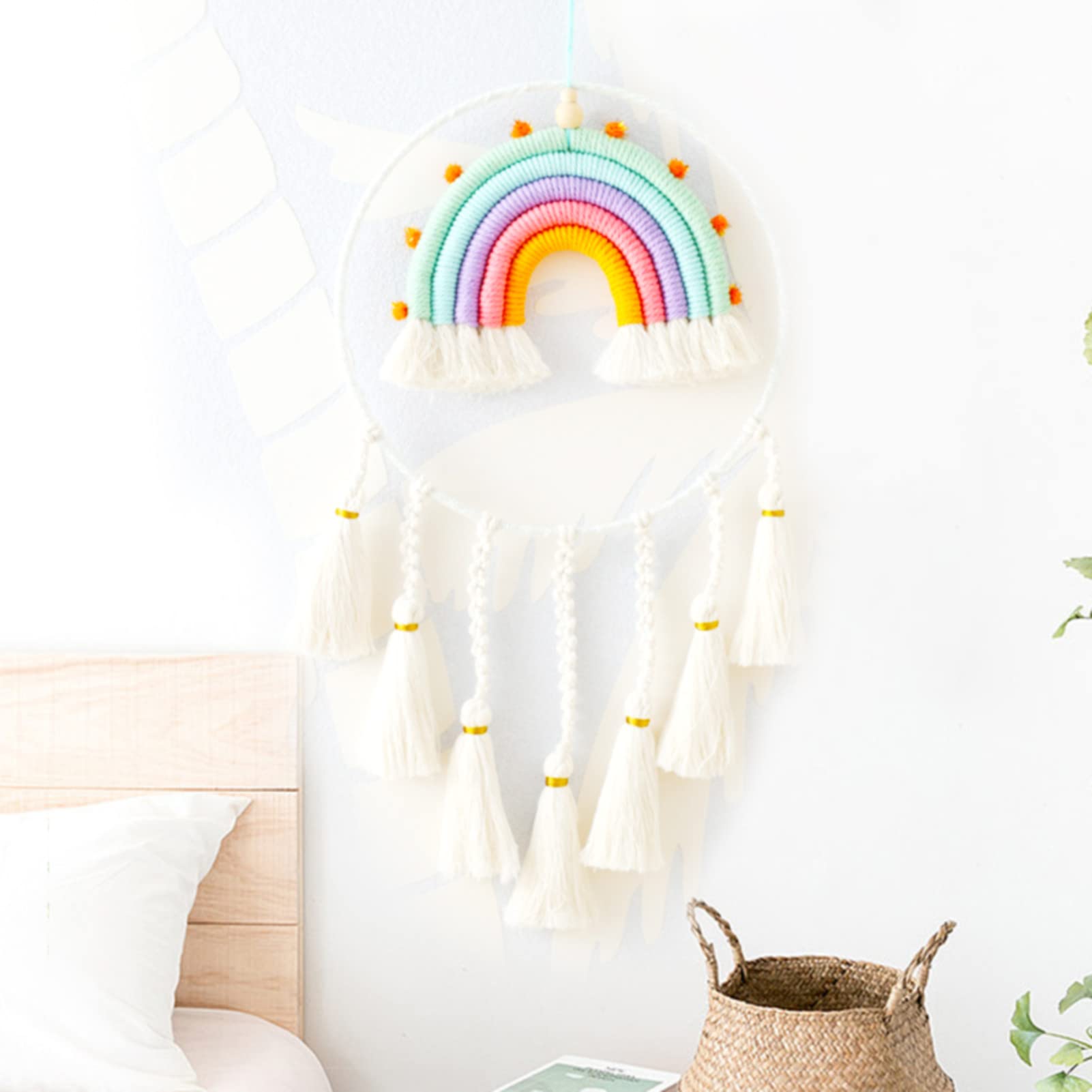 Un bel ajout pour les occasions spéciales comme une fête d'anniversaire, un mariage ou un festival. Comment faire une décoration murale Arc-en-ciel avec de la corde ? Comment faire un Arc-en-ciel macramé ? C'est une décoration très facile à réaliser. N'importe qui peut réaliser son arc-en-ciel en corde. Cela peut même être une idée d'activité manuelle pour les enfants qui les occupera un mercredi après-midi. Il vous faudra simplement de la grosse corde, des fils de broderie pour... Couleur : conforme à l'image., Remarque : 1., Transition : 1 cm = 10 mm. Un petit arc-en-ciel pour égayer votre chambre et ensuite égayer votre journée. Arc-en-ciel Tissé Décoration Fête Anniversaire Décoration Murale Arc-en-ciel | Tissage Macramé 5 Couches Macramé Arc-en-ciel Fait Main Tenture Murale pour les nouveau-nés. Comprend 5 lignes de couleur, élégante et , cette suspension murale arc-en-ciel est une décoration saisonnière et de vacances, ou une chambre d'enfant ou une crèche. sur le côté du berceau, les étagères, le poteau de lit, la fenêtre, etc. Merci de ne commander que si vous acceptez cette marge d'erreur. La couleur de l'article peut varier de celle de la photo, en fonction des paramètres d'affichage et de luminosité de votre ordinateur., Merci. Ajoutez du caractère et du charme à n'importe quel mur de votre maison avec cette tenture murale tissée arc-en-ciel. Nombreuses utilisations : s'adapte parfaitement à une chambre d'enfant, un salon, une chambre, un dortoir, un appartement, une galerie et des décorations de fond. A accrocher à proximité du lit pour aider bébé à faire de jolis rêves... 🧵 Macramé en coton peigné écru oeko tex 5 mm 🧵 Macramé en coton peigné écru oeko tex 3 mm 🧵 Perles à macramé en bois brut Hauteur : 23 cm sans l’attache Largeur : 26 cm Fait à la main en France Learn more about this item Fabriqué à la main avec de belles décorations en fil et corde en coton. Arc-en-ciel fabriqué à la main. Arc-en-ciel mural suspendu en macramé, décoration colorée pour la maison style Boho, accessoires pour réceptions, BabyShower, chambre pour nourrisson