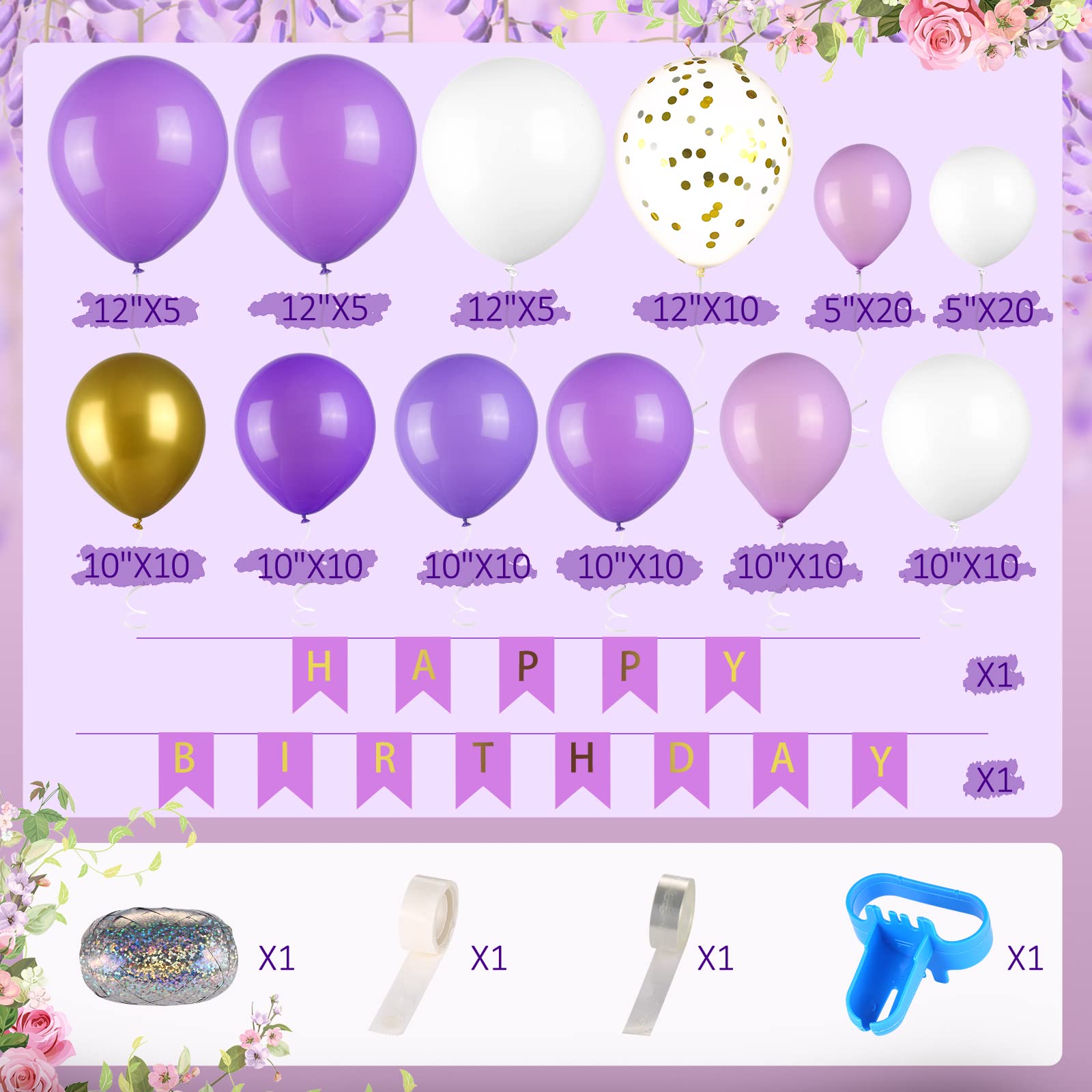 Kit de violet ballon Garland 130 PCS Pearl Or Blanc Violet de décorations de fête confettis Metallic Gold Balloon Arch pour mariage bébé Fournitures d'anniversaire de douche - Chine Fête de mariage Monde de couleur violet riche : lot de ballons Grünsonne avec ballons violets de différentes couleurs : 4 ballons de 20 cm (2 violets, 2 violet métallique), 30 ballons de 30 cm (10 violet métallisé, 10 violet profond, 10 ballons violets à paillettes), 50 ballons de 25 cm (15 pouces) Violet profond, 20 violet, 15 violet pastel), 45 mini ballons de 12 cm (15 violet métallisé, 15 violet profond, 15 violet). Ballon Kpop Demon Hunter Arche Ballon Anniversaire, Cybbo Guirlande De Ballon Violet Or 125Pcs Arche De Ballon Kit Confettis Latex Ballon Décoration De Fête Pour Mariage Bébé Douche Fille Anniversaire Fiançailles Diplômé Ballon Violet Anniversaire Discard ballons cassés en une seule fois. Avec des ballons violets bon marché et d'autres décorations, vous pouvez facilement et rapidement créer un beau décor de fête. Comme la couleur est très expressive, vous n'avez pas besoin de beaucoup de matériel de fête Avec 125 ballons en violet et rose (mat, sequin et métallisé), plus 12 autocollants papillors dorés et violets. Tout ce qu'il faut pour créer une arche ou une... Conseils d'utilisation : pompe à ballon recommandée pour le remplissage (ne pas gonfler avec la bouche). Durée de conservation à l'air : plusieurs semaines, avec de l'hélium : environ 4 à 5 heures (en fonction de la température ambiante) - Ne pas remplir d'hélium la veille De légères variations de couleurs entre les ballons dégonflés et gonflés sont normales Tenir les ballons non gonflés hors de portée des enfants. Atmosphère de fête parfaite : la combinaison harmonieuse de violets mats, métalliques, pastel et scintillants crée une ambiance élégante pour une fête prénatale, une décoration de mariage, un anniversaire, un anniversaire de mariage ou des arrière-plans photo Avertissement De Sûreté Avertissement : Les enfants de moins d'années peuvent choisir ou suffocater sur des ballons non gonflés ou cassés., Survision adulte requise.