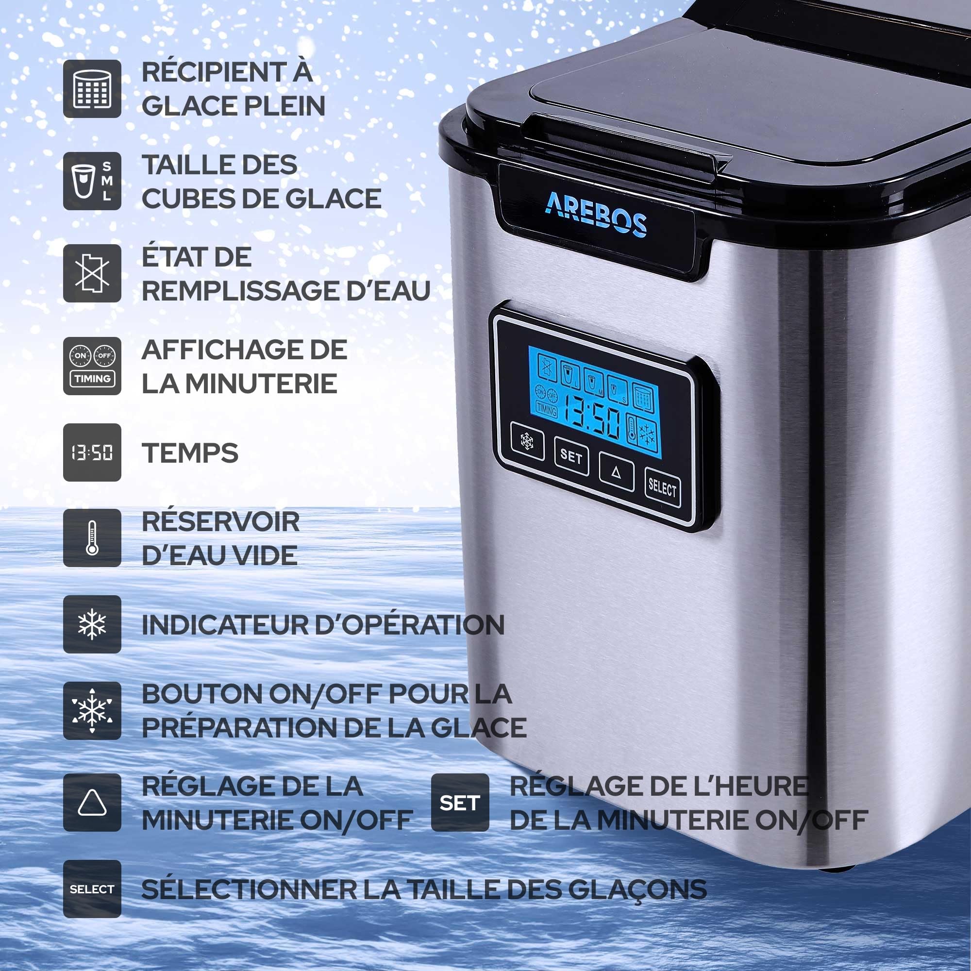 FONCTIONNEMENT FACILE La machine à glaçons peut être actionnée facilement avec deux boutons. 9 glaçons en seulement 10-15 min | 12 kg de glaçon en 24 h [Fabrication rapide de glaçons] Le réservoir d'eau a une capacité de 2,2 litres et commence à fabriquer des glaçons immédiatement après avoir été rempli d'eau. Rapport vitesse efficacité élevé qui produit 9 glaçons en 10-15 minutes. CONCEPTION INTELLIGENTE L'écran LED de haute qualité et les 3 voyants lumineux (seau à glaçon plein, remplissage d'eau, en fonctionnement) vous informent de l'état de fonctionnement de l'appareil. Deux tailles (petit / grand glaçon) EN STOCK : Machine à glaçons avec distributeur d'eau, ice maker, 12kg en 24h, 9 glaçons en 6-10 minutes, 25,2x38,9x36,3cm, noir pas cher - Retrait & Livraison - Paiement 4X disponible. Préparation culinaire à prix discount Le mode d'économie d'énergie garantit que l'appareil s'éteint automatiquement à la fin du programme. 9 évaporateurs en cuivre pur nickelé Toutes les 10-15 minutes, 9 autres glaçons seront prêts. Parfait pour le café glacé, les shakes aux fruits rafraîchissants ou les boissons fraîches lors des chaudes journées d'été ! Des symboles clairs et faciles à comprendre indiquent toujours clairement quel mode a été sélectionné. De plus, la machine à glaçons impressionne par sa petite taille et son boîtier élégant avec fenêtre d'inspection. Compresseur de refroidissement efficace [Fonction d'auto-nettoyage] La fonction de nettoyage automatique vous permet d'économiser beaucoup de travail lors du rangement après l'utilisation de la machine à glaçons. Arebos Machine à glaçons | Ice Cube Maker | 12 kg / 24 h | 10-15 minutes de production | Réservoir d'eau de 1,1 litre | Machine à glaçons | Silencieuse | Fonction autonettoyante | Noir : : Cuisine et MaisonDemandez le retour de ce produit dans les 14 jours suivant la réception, pour quelque raison que ce soit, afin d'obtenir un remboursement complet (prix de l'article et... Seau à glaçon rempli et indicateurs de niveau d'eau FONCTION AUTO-NETTOYAGE Le mode de nettoyage automatique vous épargne beaucoup de travail lors du rangement après utilisation de la machine. Fabriquez des glaçons en toute simplicité avec cette machine à glaçons parfaite et très efficace d'AREBOS qui vous permet de préparer rapidement et facilement des boissons rafraîchissantes lors de fêtes, au bureau ou ailleurs. Fabrique Glaçons Rapide 12kg/24h Bac Glacon Arebos Machine à Glaçons | Ice Cube Maker | 12 Kg / 24 H | 10 Machine à Glacons Glace Pilée L'appareil peut fabriquer jusqu'à 12 kg de glaçons dans un délai de 24 heures, assurant ainsi l’approvisionnement de rafraîchissements 24 heures sur 24., [Utilisation facile] Deux boutons permettent un fonctionnement simple de la machine à glaçons. Agent R600a de refroidissement respectueux de l'environnement SON D'ALARME PRATIQUE Une alarme sonore et des voyants LED indiquent lorsque le niveau d'eau est trop bas ou que le seau à glaçons est plein. [Deux tailles] Pour obtenir des glaçons de la taille souhaitée, sélectionnez le mode petit ou grand en appuyant simplement sur un bouton. Avec cette machine à glaçons, remplir et vider des bacs à glaçons ou acheter des sacs de glaçon appartiendra au passé. [Très fonctionnel] La pelle incluse permet une mesure exacte des glaçons. Laissez vos invités profiter d'une boisson rafraîchissante et glacée à chaque fois qu'ils en ont besoin. Description du produit Machine à glaçons AREBOS de 2,2 l Vous manquez toujours de glaçons lorsque vous recevez des invités ? Le remplissage avec des glaçons emballés séparément est pénible, et de tels sacs encombrent très rapidement le compartiment du congélateur. La machine à glaçons est dotée d'un mécanisme de refroidissement rapide, d'un fonctionnement silencieux et d'une faible consommation d'énergie. L'appareil dispose d'une fenêtre d'inspection translucide dans le couvercle pour vous permettre de surveiller l'état de la fabrication de glaçon. C'est un must pour tous vos événements ! Machine à glace - Cuisine - Maison et vie quotidienne