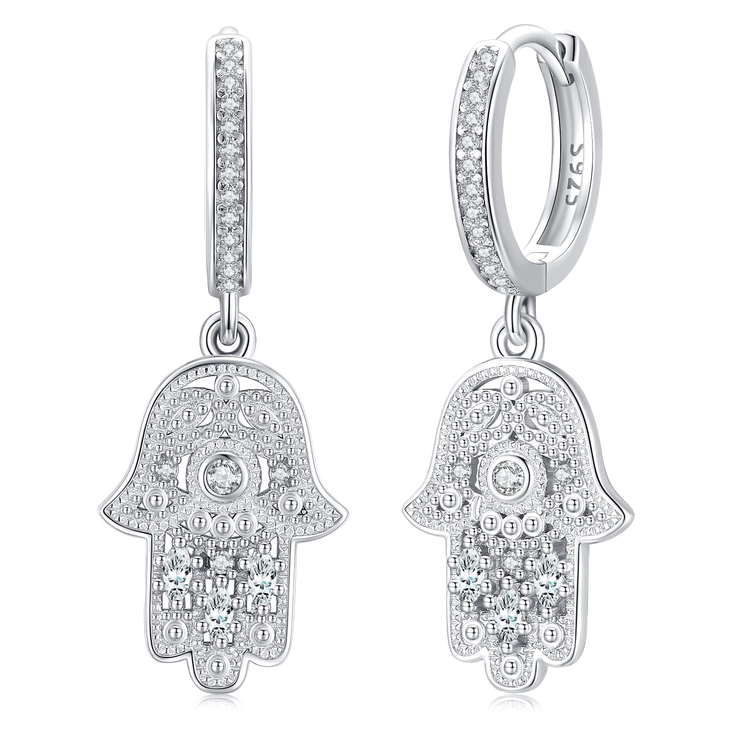 Grand pendentif en argent sterling main de Fatima Hamsa | Tendances bijoux - France Pendentif Main de Fatma - Bijoux Argent Rhodié, Femme, Esthétique... Bijou Protection Pendentif Main De Fatma En Argent 925 Grand Modèle – Joaillerie Legros Pendentif Force Bénédiction Cadeau La Main de Fatma, également connue sous le nom de Khamsa, est un symbole universel de protection contre le mauvais œil, de bénédiction et de chance. Nos pendentifs reflètent cette énergie positive avec une variété de designs, des représentations classiques aux créations modernes La main de Fatima signe force, pouvoir et bénédiction, signe également de lutter contre le mauvais œil et s'utilise pour protéger la personne qui le porte Pendentif main en argent sterling 925/1000
