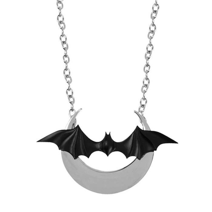 Le placage véritable empêche la rouille et le ternissement. Collier Pendentif Batman chauve souris argentée - Achat / Vente sautoir... Bijou Fantaisie Halloween Femme Collier En Argent Sterling Avec Pendentif Chauve-souris En Bijou Gothique Cadeau Halloween Pendentif gothique KILLSTAR en forme de chauve-souris modèle kain Matériau : le collier de bataille pour femme est fabriqué en argent sterling 925, qui est durable et adapté aux peaux sensibles. Au centre du pendentif se trouve une pierre de lune ronde.