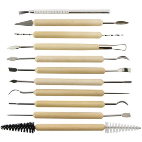 Outils De Modelage En Argile Outils De Sculpture Sur Argile, 46 Pcs Outils D'argile De Poterie Pour Modeler La Pâte à Modeler Outils Poterie Ensemble de 6 Outils de Modelage pour l’Argile par Kurtzy - Kit en Métal et Bois pour la 4 Pièces Sculpture Stylo, Outils Argile pour Poterie, Outils Poterie... Outil de poterie : différents types de 9 outils peuvent répondre à différents besoins, dont 4 boules de modelage et 5 stylos à pointe en caoutchouc souple. Outil de pointage de stylet double extrémité : outils de poterie au design double extrémité, 13 tailles d'extrémité de boule au total : au moins 1 mm, maximum 18,5 mm de diamètre. Matériau de qualité supérieure : les outils de modelage sont en silicone + plastique + métal, ont une poignée en silicone, sont faciles à saisir, faciles à utiliser et peuvent être utilisés pendant longtemps pour différents types d'utilisation. Dimensions (L x l x épaisseur) : env., 15,11,9,12,1,12,5,13 cm. Utilisation polyvalente : le stylo en silicone à double tête est adapté pour marquer, mélanger des couleurs, pour des détails fins, pour enlever les pièces en excès, etc. L'outil à bille à double extrémité en acier inoxydable est adapté pour relier des coutures dans l'argile, faire des points, peindre sur des pierres, etc. Large application : cet outil de modelage en céramique est adapté pour la modélisation de l'argile, la sculpture de poterie, la sculpture de cire de poterie, le kit de poterie pour l'artisanat en mousse, la peinture du visage, les ongles, le fondant, la décoration de gâteaux, les projets d'art et plus encore et les poteries peuvent également être utilisés pour décorer des gâteaux et des fondants, et le sucre polymère est un bon outil pour modeler et graver, profiter pour s'amuser à la maison., Outil de fondant. Accessoire de Sculpture en Argile, Outils à Pointe en Acier avec Tête...