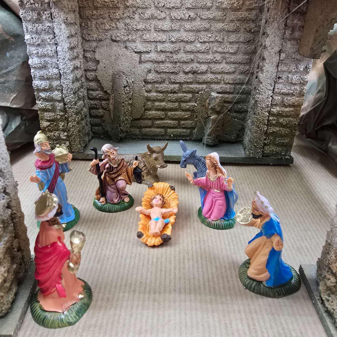 S.A. - Personnages bois sculpté Âne allongé terre cuite crèche napolitaine 10 cm peint main | vente en... Décoration Noël Traditionnelle Italie Arkamii Crèche De Noël Italienne Faite à La Main, Style Arabe Santons De Provence Avec des dimensions de 40 x 25 x 29 cm, elle est parfaitement proportionnée pour accueillir des personnages de 12 cm. La structure présente des détails architecturaux authentiques, comme une arche en pierre avec fenêtre en croix et un toit en tuiles soigneusement reproduits Style arabe : design rustique de style arabe avec finition blanche et beige, idéal pour les décorations de Noël traditionnelles Fait à la main : ensemble de personnages pour crèche peints à la main, fabriqués en Italie