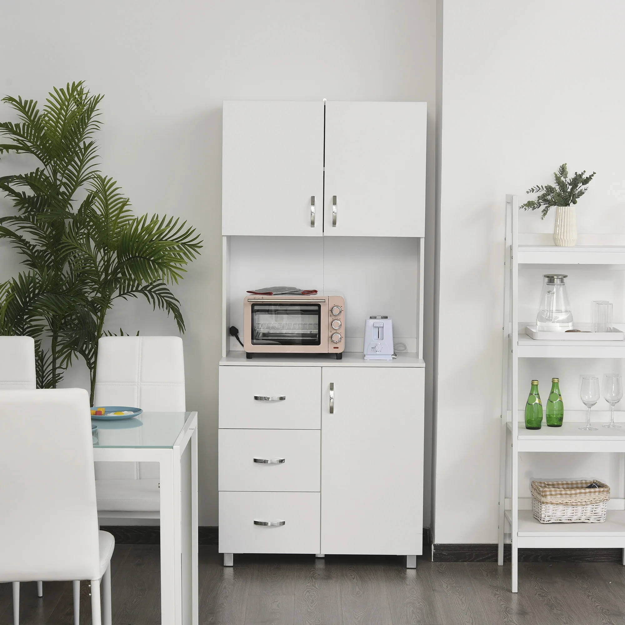 Excellent niveau de finition : poignées de portes, charnières robustes, panneaux épais, étagères réglables en hauteur, etc. Montage facile et rapide à l'aide du manuel d'assemblage illustré fourni totales : 76,2l x 40,2P x 183H cm ; - Dim. Armoire de rangement de cuisine multi-rangements : 2 placards avec 4 portes et 2 étagères réglables + un grand tiroir, idéal pour ranger votre vaisselle, vos ustensiles et autres accessoires de cuisine Vaisselier Vitrine Armoire De Cuisine HOMCOM 4 Portes - 183 Cm Hauteur - Gris - Avec Tiroir Et étagères Réglables - Vaisselier Meuble Cuisine HOMCOM La sangle anti-basculement assure stabilité et sécurité Armoire de salle à manger design contemporain blanche uni avec poignées métal noires : idéale pour ajouter une touche de modernité et d'élégance supplémentaire à votre intérieur HOMCOM Armoire de cuisine buffet cuisine style moderne avec placards... recommandée : 78 Kg ; - Montage facile et rapide à l'aide du manuel d'assemblage illustré fourni Disposant de nombreux rangements haut et bas (4 portes, grand tiroir), ce meuble de rangement pour cuisine vous sera très pratique d'utilisation pour devenir rapidement indispensable au quotidien. VAISSELIER DE CUISINE MULTI-RANGEMENTS : 2 placards avec 4 portes et 2 étagères réglables + un grand tiroir, idéal pour ranger votre vaisselle, vos ustensiles et autres accessoires de cuisine Armoire De Cuisine HOMCOM , Buffet Cuisine Avec Plan De Hauteur 170 Marque. HOMCOM · Couleur. Blanc. · Matériau. Bois d'ingénierie · Usages recommandés pour le produit. Vaisselle · Dimensions du produit. 40P x 76,5l x 181H... rangement interne tiroir : 61,5l x 33,5P x 10H cm ; - Charge max.