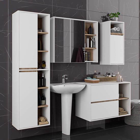 Fabrication AKORD garantit la durabilité et l'élégance pour s'adapter harmonieusement à tout décor de salle de bain. Akord armoire de salle de bain fin colonne 30 2 portes blanc blanc... Design esthétique et moderne : Sublimez votre salle de bain avec l'armoire salle de bain miroir VAMI W90., Trois compartiments ouverts ajoutent une touche contemporaine à votre espace tout en gardant vos articles favoris à portée de main. Grâce à son design mural, cette armoire de toilette miroir optimise votre espace et maintient votre salle de bain nette et ordonnée. Meuble Rangement Mural 90 Cm Armoire De Salle De Bain - SALALIS - DP2715 - Miroir Rond 80 Cm - LED Meuble Wc Fonctionnalité optimisée : Dévoilez votre routine de soin quotidienne avec l'armoire VAMI W90, combinant brillamment espace de rangement et miroir salle de bain avec rangement. Cette armoire pharmacie miroir est conçue pour maximiser l'espace tout en offrant une esthétique moderne à votre salle de bain. Adoptez cette solution astucieuse pour votre rangement salle de bain et profitez d'un environnement élégant et organisé chaque jour. Miroirs pratiques pour la routine quotidienne : Les miroirs intégrés des portes de l'armoire VAMI W90 vous assurent toujours une apparence soignée. Installation murale pratique : Libérez de l'espace au sol avec cette armoire de salle de bain murale astucieuse et améliorez la configuration de votre salle de bain. De plus, trois compartiments ouverts assurent un accès facile et rapide tout en contribuant à son look contemporain. En choisissant cette armoire de salle de bain avec miroir, vous transformez non seulement la fonctionnalité de votre espace mais améliorez aussi son apparence globale. Placé sur les deux portes de l'armoire, le miroir est parfait pour le maquillage quotidien ou les soins du soir. L'armoire contient trois étagères pour les cosmétiques et les petits accessoires. Les trois étagères ouvertes supplémentaires ajoutent une valeur esthétique et fonctionnelle au produit Mesurant 90 cm de large, 75 cm de haut, et 15 cm de profondeur, elle intègre deux portes avec miroir parfaites pour les routines de beauté quotidienne, ainsi que pour un usage pratique le soir. Optimisez chaque centimètre carré dans votre salle de bain, rendant votre espace ordonné sans sacrifier ni le style ni la fonctionnalité. Armoire AKORD S60 avec miroir Wengé 60 cm 2 portes 2 tiroirs façade