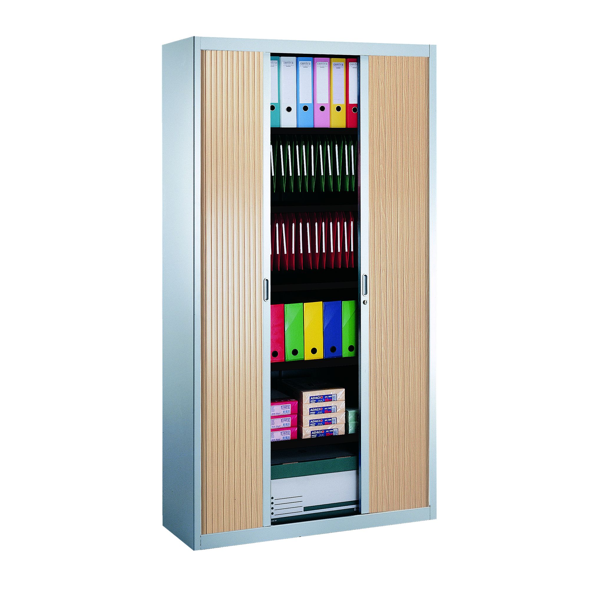 Armoire haute à portes rideaux tons bois- GAPSA Armoires Gapsa Equipement : 4 tablettes noires réglables tous les 5 cm, avec replis pour dossiers suspendus. Partie supérieure de l'armoire équipée pour recevoir des dossiers suspendus Armoire Rideaux Démontable Armoire Penderie 2/3 à Rideaux - Largeur 120 Cm - GENERIC Pas Cher Tablettes Réglables Classeurs Fermeture : rideau PVC, lamelles 25 mm, s'escamotant totalement dans les parois pour un accès et une visibilité totale du contenu de l'armoire. Équipement : tablettes noires réglables tous les 5 cm avec replis pour dossiers suspendus. ARMOIRE À RIDEAUX DÉMONTABLES 200 X 120 CM ALU-MERISIER Comparer les... Serrure 2 clés (1 articulée). Partie supérieure de l'armoire équipée pour recevoir des dossiers suspendus. Optimisez votre rangement avec une armoire de qualité, à prix très compétitif., Rideaux démontables., Portes escamotables., Verrouillage centralisé. Charge utile : jusqu'à 100 kg / tablette.