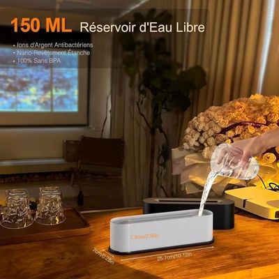 Chaque couleur est réglable de brillant à faible. Humidificateur Réservoir 150ml LED 7 Couleurs Pure Aroma 150 Aromathérapie Humidificateur Et Diffuseur D'arômes Cecotec Pure Aroma 150 Yang - 150ml - 7 Couleurs LED Humidificateur 150ml Cecotec Aromatthérapie Maison Design élégant Description du produit Humidificateur ultrasonique avec diffuseur d’arômes, réservoir jusqu’à 150 ml et 7 couleurs LED. Plus de capacité, plus de bien-être. Son réservoir de 150 ml permet une utilisation prolongée, pour profiter plus longtemps d`une atmosphère fraîche et parfumée... Humidificateur à ultrasons aide à réduire la sécheresse ambiante. Convient pour les grandes pièces. Description du produit Humidificateur ultrasonique avec diffuseur d'arômes, réservoir jusqu'à 150 ml et 7 couleurs LED. Mode d'emploi Remplir le réservoir d'eau, ajouter quelques gouttes d'huile essentielle, allumer l'appareil et sélectionner la couleur et l'intensité lumineuse souhaitées. Éviter le contact direct avec la peau pour les huiles essentielles non diluées. Tenir hors... Assurer une bonne ventilation pendant l'utilisation. Avertissement De Sûreté Éviter le contact direct avec la peau pour les huiles essentielles non diluées. Ultra silencieux grâce à sa technologie ultrasonique. Cecotec Humidificateur à ultrasons Pure Aroma 150 300 ml Tenir hors de portée des enfants et des animaux domestiques. Minuterie jusqu'à 3 heures.