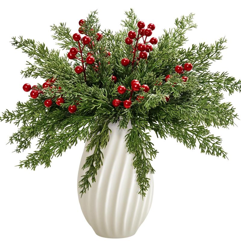 Versatile Decoration: Suitable for a wide range of uses including enhancing mantels porches staircases and door frames these faux pine branches add visual warmth and charm to both modern and traditional interior designs Creative Crafting Option: Perfect for DIY enthusiasts who love making handmade wreaths table runners floral bouquets and other festive crafts that bring a personal and artistic touch to every seasonal home décor project Branches Sapin Shjxi Artificial Pine Branches - 60Pcs Real Touch Faux Green Plants Verdure Faux Toucher Réel Description du produit Branches de Pin Faux Parfaites pour une utilisation en intérieur comme en extérieur, ces vertes apportent une touche festive aux cheminées, portes d'entrée, salons, jardins et manteaux de cheminée. Timeless Seasonal Accent: Faux pine branches provide enduring beauty with their vibrant hues and realistic appeal, pairing greenery and red accents to craft a warm and inviting ambiance, suited for adorning spaces like entryways or festive gatherings Ce lot comprend 60 pièces de décorations festives et polyvalentes, conçues pour rehausser n'importe quel espace. Créez des compositions saisissantes ou utilisez-les comme décorations autonomes pour ajouter charme et chaleur à votre maison. Flexible Arrangement: Each branch features a bendable wire stem allowing you to twist shape or trim it easily to fit in wreaths garlands floral arrangements or table centerpieces perfect for crafting and customizing festive décor displays Le design réaliste assure une beauté sans nécessiter d'entretien.
