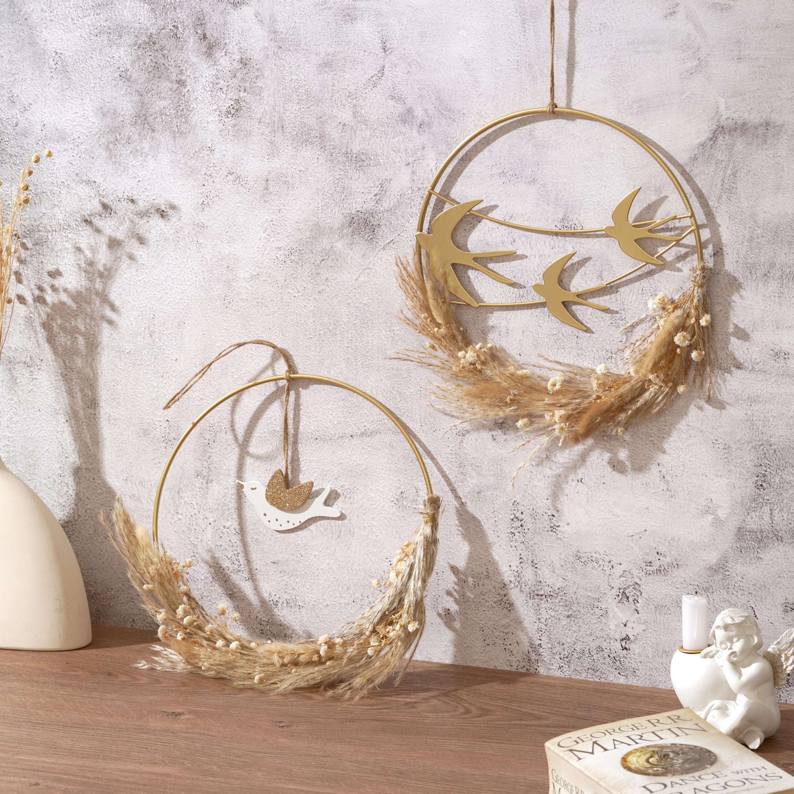 Accrochez-le simplement et profitez de sa beauté tout au long de l'année, sans vous soucier du flétrissement ou de la perte. Herbe Séchée Blanche Marron Panonw Couronne D'herbe De Pampa Artificielle, Couronne De Fleurs Séchées Naturelles, Guirlande De Fleurs Artificielles Pour Décoration De Mariage Bohème, Ferme, Décoration De Mariage Décoration Salon Ferme Moderne Fonction : 1., Fait de fleurs séchées aux couleurs vives, donc elles ne se faneront jamais. Lombok, notre couronne murale de fleurs séchées Décoration polyvalente : parfaite pour les portes d'entrée et les murs, cette couronne d'herbe de pampa de ferme ajoute une touche charmante et invitante à votre décoration d'intérieur. Dur et durable : fabriquée avec des fleurs séchées de haute qualité, cette couronne est conçue pour résister à l'épreuve du temps. Carré 3 pouces Couronne dorée sculptée de Style rétro européen, cadre... Pleine et moelleuse : la couronne est fabriquée avec de l'herbe de pampa abondante, créant une apparence pleine et moelleuse qui apporte une atmosphère vive et confortable à votre maison. Mettez-le sur votre table, votre porte, vos coins de mur et vous constaterez que ces espaces sont plus nombreux. L'herbe de la pampa conserve ses couleurs vives, garantissant une beauté et un plaisir durables. Aquarelle Couronne Tropicale D'herbe De Pampa Sèche Et Verte. Bouquet Spécification : Matériel : Fleur séchée Couleur : marron, blanc Taille : 7,9 PO Le forfait comprend : 1 x couronne Entretien facile : contrairement à la véritable herbe de pampa, cette couronne artificielle ne nécessite aucun arrosage ni entretien.