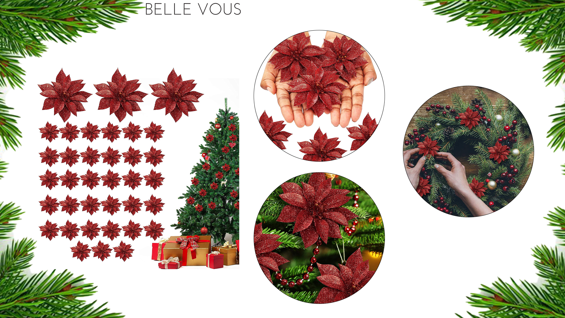 Décoration Noël Poinsettia Lot De 12 Poinsettia Artificielles à Paillettes De 12,7 Cm Avec Attaches Pour Mariage, Noël, Festival, Décoration De Vacances, Couronne De Noël, Guirlande, Décoration De Noël Fleurs Poinsettia Artificielles Paillettes Noël Grand poinsettia de noël paillettes - Artisan Fleuriste Arum & sens... Fleurs de Poinsettia artificielles 12 pièces, fleurs de noël à Décoration multifonctionnelle : décorez votre sapin de Noël, couronne, couronne, centre de table à manger avec des décorations de Noël poinsettia, et même comme garniture pour les cadeaux de vacances., ., Vous pouvez les accrocher aux fenêtres et aux portes, ou au centre des bougies du réveillon de Noël. Procurez-vous des poinsettias en plastique, des guirlandes, de gros ornements ... verte à laquelle vous avez ajouté des brillants pour chaque décoration à... Élégance à double couche : les fleurs artistiques de poinsettia adoptent un superbe design à double couche, ajoutant de la profondeur et de la dimension à votre décoration de vacances., ., Chaque couche a été méticuleusement conçue pour ressembler à de véritables pétales de poinsettia. Ce poinsettia artificiel a non seulement des couleurs et des formes festives traditionnelles, mais contient également des détails plus exquis., ., Il allie élégance et mode, créant un paysage magnifique et laissant une profonde impression sur les clients ;. Les fleurs artificielles de Noël ont des couleurs festives et des surfaces scintillantes, ce qui les rend parfaites pour la décoration d'arbres, les rendant étincelantes et accrocheuses, ajoutant une atmosphère festive chaleureuse., ., Caractéristiques :., ., Fleurs artificielles poinsettia., ., -Couleur : Vert., ., -Matériau : Plastique., ., -Taille : 14 cm/5,51 pouces., ., Poids : 9g., ., Remarque : Mesure manuelle, veuillez permettre de légères erreurs de taille., ., Les couleurs peuvent exister de légères différences en raison des différents écrans., ., Forfait comprenant 12 * fleurs artificielles poinsettia Description : Ces fleurs artificielles de poinsettia sont faites de matières plastiques, qui sont sûres, légères, flexibles, faciles à ranger, mais pas faciles à casser ou à déformer, ce qui signifie qu'elles peuvent conserver leur belle forme pendant longtemps comme de belles décorations ;.