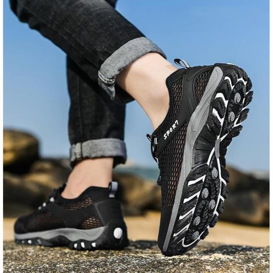 Baskets respirantes à séchage rapide pour la randonnée HOBIBEAR Chaussures pieds nus larges pour hoe et fee, unisexes, chaussures d'extérieur zéro... Tissu Respirant Antidérapant Asifn Chaussures Aquatiques Unisexes à Séchage Rapide, Chaussures Chaussures Eau Hommes Style : Chaussures d'eau à séchage rapide pour hommes Couleur:Noir,Marron,Gris,Kaki Matière supérieure : Maille Semelle : semelle extérieure en caoutchouc Intérieur : Doublure confort Style : Décontracté Occasion : Quotidien Fermeture : Lacet Style d'orteil : Bout rond Fonction : Léger Tableau des tailles : 38 EU = 24., 0 cm du talon à l'orteil 39 EU = 24., 5 cm du talon à l'orteil 40 EU = 25., 0 cm du talon à l'orteil 41 EU = 25., 5 cm du talon à l'orteil 42 EU = 26., 0 cm du talon à l'orteil 43 EU = 26., 5 cm du talon à l'orteil 44 EU = 27., 0 cm du talon à l'orteil 45 EU = 27., 5 cm du talon à l'orteil 46 EU = 28., 0 cm du talon à l'orteil 47 EU = 28., 5 cm du talon à l'orteil 48 EU = 29., 0 cm du talon à l'orteil Détails du produit : Conception en matériaux légers, légers et flexibles ; Chaussures souples, semelle extérieure en caoutchouc, élastique antidérapant résistant à l'usure ; Tige en maille, sèche et respirante ; Moderne et classique, simple et polyvalent DOUBLURE DOUCE : La doublure de ces chaussures d'eau à séchage rapide pour hommes est faite d'un matériau doux, agréable pour la peau et proche des pieds, et l'air à l'intérieur des chaussures peut circuler librement, ce qui apporte une expérience confortable aux pieds Séchage rapide pour un confort durable; Semelle antidérapante pour une adhérence parfaite; Légèreté exceptionnelle pour une sensation pieds n; Idéales... La structure tricotée innovante favorise la circulation de l'air, ce qui permet d'évacuer l'humidité et de réduire l'inconfort causé par la transpiration ANTIGLISSE ET RÉSISTANT À L'USURE:Ces chaussures d'eau à séchage rapide pour hommes sont fabriquées avec des semelles en caoutchouc durables et épaisses, qui protègent vos pieds contre les pierres et les rochers. APPLICABLE : Ces chaussures d'eau à séchage rapide pour hommes sont parfaites pour les activités d'intérieur et d'extérieur. Le motif de la semelle est antidérapant et offre une bonne protection pour vos activités de plein air