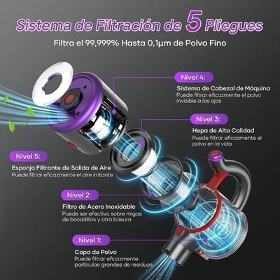 【Filtration cyclonique avancée en 8 étapes】Grâce à son système de filtre HEPA lavable à double cycle, cet aspirateur sans fil capture 99,9 % des poussières fines et des bactéries, tout en purifiant les allergènes en suspension dans l'air et en améliorant considérablement la fraîcheur de l'air intérieur. Le support mural permet un gain de place et un rangement facile. Aspirateur Main Multifonction Aspirateur Sans Fil, 550 W/45 Kpa/70 Minutes Avec écran LED, Chargement Aspirateur Poils Animaux Aspirateur sans fil, 48 000 Pa/550 W/70 min, avec brosse anti... 【Brosse LED anti-emmêlement】L'aspirateur sans fil V15S pour poils d'animaux est doté d'une nouvelle tête de brosse en V améliorée qui empêche 99 % des poils de s'emmêler, ce qui le rend idéal pour les familles avec animaux. 1 * Aspirateur sans fil 1 * Tête de brosse électrique anti-enchevêtrement en forme de V 1 * Batterie amovible 1 * Support mural 1 * Filtre HEPA 1 * Filtre éponge 1 * Brosse plate longue 1 * Mini brosse de nettoyage 1 * Brosse 2 en 1 1 * Guide de démarrage rapide 1 * Manuel en allemand Avec une autonomie allant jusqu'à 70 minutes, soit 35 % de plus que les appareils classiques, il nettoie même les grandes surfaces en une seule fois, sans recharge constante ! Idéal pour nettoyer les canapés, les voitures, les escaliers, les tissus d'ameublement et bien plus encore, du sol au plafond, des rideaux à l'intérieur des véhicules. La tête de brosse ultra-flexible pivote à 180° latéralement et à 90° verticalement. Il élimine sans effort les saletés grossières, les poils d'animaux, les peluches et la poussière des coins et des zones difficiles d'accès. Son grand bac à poussière de 1,6 L et son système de vidage en une seule touche facilitent le nettoyage ! Il est facile à monter les escaliers et nettoie sans effort sous les rideaux hauts ou les canapés ! Aspirateur À Main Sans Fil, Puissant, 10 000 Pa, Portable, Avec... Contrôle intelligent, aspiration sans effort : votre maison connectée commence ici. 【Aspirateur multifonction 6 en 1】Équipé de plusieurs accessoires professionnels, cet appareil se transforme facilement en aspirateur à main ou aspirateur de voiture. Grâce à sa conception légère, il peut être utilisé d'une seule main, même par les personnes âgées. Générique Aspirateur sans fil rechargeable balai électrique sans