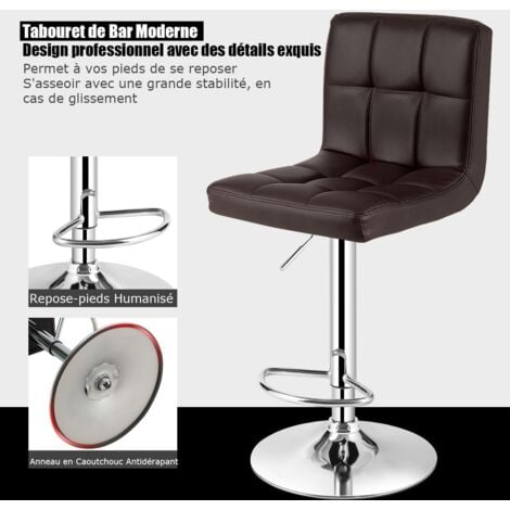 DESIGN PENSÉ POUR VOTRE BAR : Conçue pour les comptoirs de 89 à 99 cm de haut, cette chaise de bar au style épuré s’intègre avec élégance dans tous les intérieurs, du bar maison à l’espace café. Tabouret Haut Avec Dossier RELAX4LIFE Tabouret De Bar Lot De 2, Chaise De Bar Pivotante, Hauteur D'Assise 60-82 CM, Chaise Haute Bar Avec Dossier Incurvé, Repose-Pieds, Charge 150 KG, Pour Comptoir, Îlot, Bar Chaise De Bar îlot Central 150kg Description du produit : Apportez à votre intérieur une note de style et de confort avec ce tabouret de bar élégant ! CONSTRUCTION ROBUSTE★ Les pieds robustes en bois d'hévéa massif et le cadre en pin offrent un soutien solide, permettant à la chaise de bar de supporter un poids de 150 kg CONFORT HAUT DE GAMME : Découvrez un assise exceptionnelle avec notre tabouret de bar au généreux coussin rond, recouvert d'une doucefausse fourrure d'agneau et rembourré d’une mousse épaisse pour un accueil résolument cosy. DOSSIER ET REPOSE-PIED : Le dossier incurvé et le repose-pieds intégré offrent un soutien confortable du dos et des jambes. RELAX4LIFE Lot de 2 Tabourets de Bar Pivotant Universel avec Dossier et... Caractéristiques principales : Coussin en fausse fourrure d'agneau douce et épais pour un soutien optimal Dossier incurvé s’adaptant aux contours du corps pour un confort prolongé Cadre en bois massif d'hévéa et Structure en forme de X assurant stabilité Patins antidérapants empêchant le glissement et protégeant le sol des rayures Repose-pieds supplémentaire offrant un soutien confortable aux jambes S’intègre parfaitement dans les salons, salles à manger, bars, cafés tabouret de bar convient pour des comptoirs de 89 à 99 cm de hauteur Spécifications techniques : Couleur : Naturel + Beige Matériaux : Bois d'Hévéa, Fausse Fourrure d'Agneau, Mousse Dimensions totales : 47,5 x 45 x 78,5 cm (L x l x H) Diamètre du siège : 45 cm Hauteur d’assise : 62 cm Hauteur du repose-pieds au sol : 18,5 cm Hauteur recommandée du comptoir : 89–99 cm Poids net par tabouret : 5,5 kg Capacité de charge par tabouret : 150 kg Contenu de la livraison : 2 x Tabourets de bar 1 x Manuel d’instructions Il est doté d’un coussin rond de 45 cm de diamètre, avec un tissu en peau d’agneau doux et un rembourrage épais en mousse pour un confort optimal. STRUCTURE STABLE ET DURABLE : Fabriqué en bois d'hévéa robuste, ce tabouret haut cuisine allie résistance et longévité. Lot De 2 Chaises De Bar Scandinaves Hauteur 67cm Siège Patchwork Tissu Pieds Bois Clair Mali Bleu 92360372 Les patins antidérapants et le repose-pieds permettent de détendre parfaitement vos jambes. DÉTAILS TOUT CONFORT : Les patins antidérapants évitent les vibrations et protègent le sol.