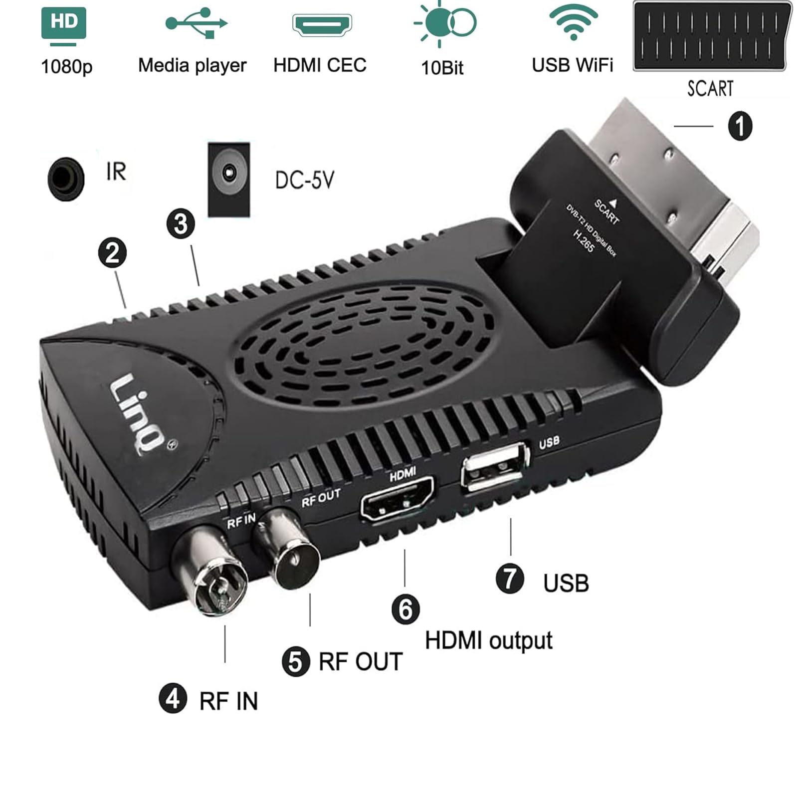 Sintonizador Tdt Hd Smartix Atlantis DH12 - Decodificador Digital De TV Terrestre DVBT Y DVBT2 HD Stick, MPEG-2, MPEG-4/H.264, HEVC/H.265 USB IR Port Extension Remote Control Negro Decodificador Tdt Hd Décodeur DVBT et DVBT2 HD / Compression MPEG-2, MPEG-4/H.264, HEVC/H.265 10 bits / Tuning automatique et manuel / Enregistrement jusqu'à 1000 canaux LCN... Enregistreur Numérique Terrestre Décodeur Tv Atlantis Smartix DH17 Numérique Terrestre DVBT-DVBT2 Résolution 1080p Hdmi Scart 265 10 bits, syntonisation automatique et manuelle, enregistrement jusqu'à 1000 canaux, LCN (numérotation automatique des canaux), EPG (guide électronique des programmes), fonction pause programme, fonction d'enregistrement programmé (via USB). LCN (numérotation automatique des canaux) / EPG (guide électronique programmes) / Sous-titres / Audio multilingue (là pris en charge) / Télévidéo (télétext) / Contrôle parental (canal local) Atlantis Smartix DH17 Numérique Terrestre DVBT-DVBT2-HEVC mpeg2-mpeg4... 265 10 bits / Tuning automatique et manuel / Enregistrement jusqu'à 1000 canaux Lecteur multimédia intégré avec lecture de fichiers vidéo : AVI/MKV/MP4, audio : MP3, images : JPG, BMP Télécommande fournie (la télécommande fournie permet de programmer les touches On/Off, volume +/-, sélection entrée de la TV sur la télécommande du décodeur) / logiciel multilingue actuable Résolution max prise en charge 1080p 60Hz / Connexions : HDMI (1., 4v), péritel / Format vidéo : 16:9, 4:3cc, 4:3ff, 4:3lb
