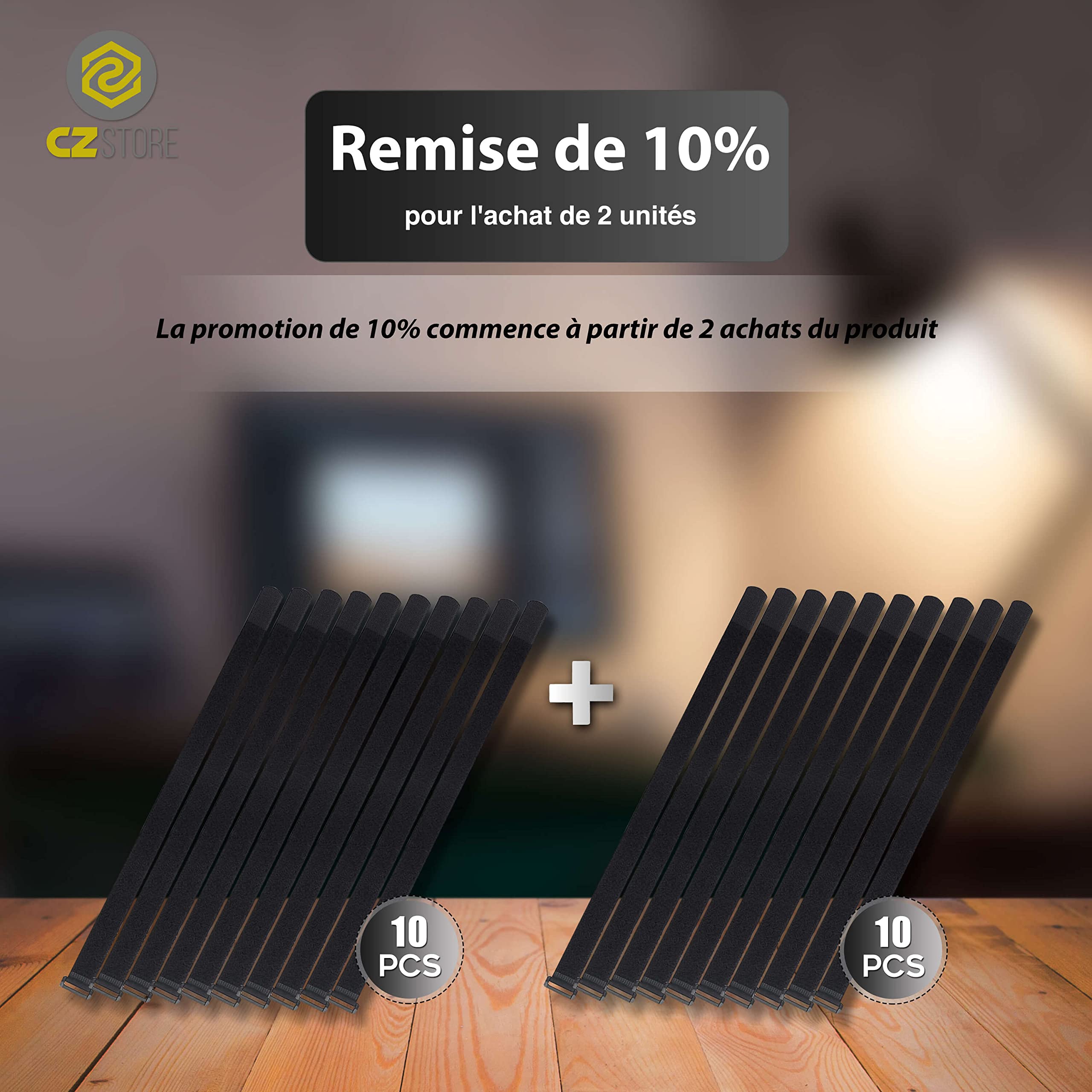 L’installation est intuitive : il suffit d’enrouler la sangle scratch autour des câbles, d’insérer l’extrémité dans la boucle et de tirer pour un maintien ferme. Attache Câble Lot De 10 Scratch Attaches De Câbles, 2cm X 45cm Attache Attaches Câbles Scratch Large compatibilité : Ces attache cables conviennent à la gestion de fils électriques, cordons audio, outils ou tuyaux. Matériau sturdy et écologique : Fabriquées en nylon de qualité, ces attaches câbles combinent résistance et flexibilité. Ces attaches scratch câbles peuvent être combinées entre elles pour obtenir la longueur désirée et s’ajustent selon vos besoins d’organisation. Parfaites pour la maison, le bureau, le garage ou le jardin, elles assurent un environnement ordonné et sécurisé, sans enchevêtrement. Serre Cable Scratch 1pcs 10mmx10m Rouleau Scratch,Scratch Serre Cable,Attache Cable Scratch,,Reutilisable Nylon Rouleau Scratch Pour Rangement Cable, Ruban Serre-câble Cable Librement Découpables,Noir Scratch Cable Contrairement aux serre-câbles plastiques, elles sont réutilisables à l’infini, réduisant les déchets tout en garantissant un maintien stable et soigné. Leur surface auto-agrippante garantit une adhérence stable sans endommager le matériau des câbles. Polyvalentes, ces sangles attache-câbles peuvent aussi servir pour d’autres usages : fixer des plantes, regrouper des outils, maintenir des tuyaux ou sécuriser des objets pendant le transport. Conception réglable et pratique : Dotées d’une boucle intégrée, ces sangles attache-câbles s’adaptent facilement à différents diamètres. Elles peuvent aussi servir à fixer plantes, sacs, rideaux ou accessoires de voyage. b>QUALITE: Chaque serre cable est conçu en nylon de haute qualité avec un côté scratch très adhésif permettrant un serrage durable de l'attache fil Sangle de 10 m avec boucle 50 attaches de câble réutilisable cable... Conçues en nylon de haute qualité, ces sangles scratch auto-agrippantes combinent solidité, flexibilité et respect de l’environnement. Grâce à leur boucle intégrée, elles se serrent fermement tout en restant faciles à détacher et à repositionner. Offrez-vous un environnement organisé, sans désordre ni fils emmêlés, tout en profitant d’un produit économique, idéal pour une utilisation quotidienne et répétée. Les attaches câbles réutilisables avec boucle offrent une solution simple, sturdy et esthétique pour organiser vos câbles et accessoires.