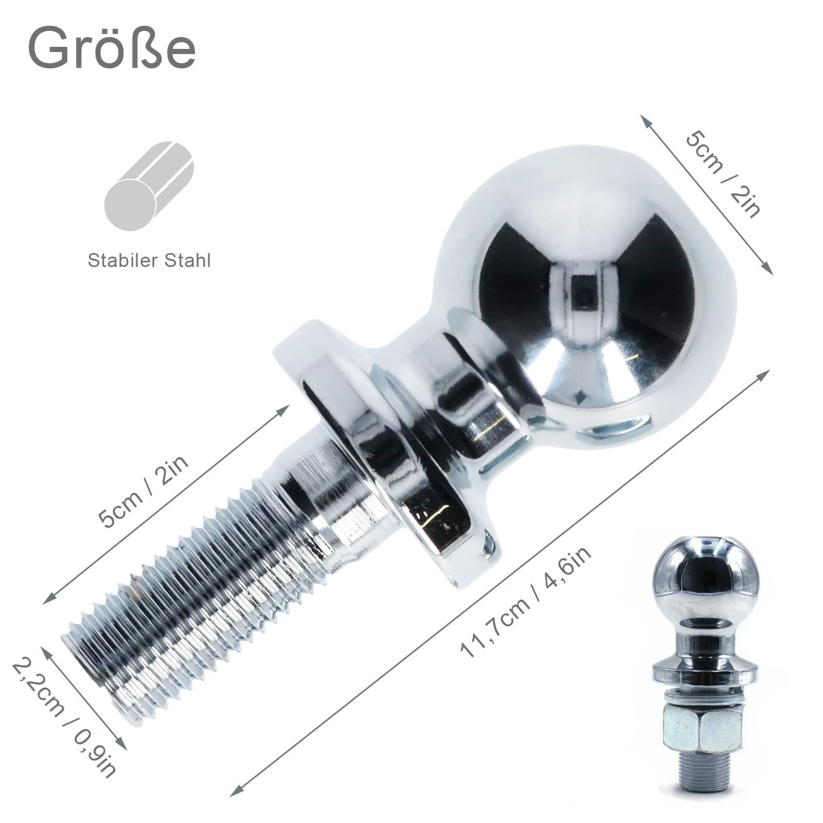 Attelage à boule JD 390 mm Chapes d'attelage type rotule k80 - AGZ000536510 【Forte Traction】: Tête de boule de remorque Tracteur de remorque Idéal pour remorquer des véhicules. Boule Pour Attelage Leroy Merlin Boule D'Attelage 50 Mm Pour Tracteur - Boulon à Tête Sphérique Pour Rail D'Attelage - Barre De Traction Jusqu'à 3,5 Tonnes Boule Attelage - Excellente traction et fiabilité pour le remorquage de votre voiture. Boule d'attelage avec plaque à visser Schéma de perçage : 83 x 56 mm, valeur D : 17,5 kN, charge verticale : 150 kg - Plaque à rotule pour châssis standard... Boule D'attelage de Remorque 50 mm pour Tracteurs - 3,5 Tonnes avec Boulon à Tête Sphérique 22 mm pour Barre · 5,05,0 sur 5 étoiles (3) · 13,99 €13,99€Le plus... Sa finition chromée durable la protège de la pluie, de la poussière et de la rouille lorsqu'elle est utilisée dans le jardin ou dans les champs. 【Haute Performance】: Cette boule d'attelage est livrée avec des écrous hexagonaux zingués et des rondelles de blocage. Il est livré avec une tête de boule pré-assemblée pour préparer l'attelage de la remorque et l'axe d'attelage de la remorque. - Finition chromée robuste, lisse et sans bavure, résistante à la pluie, à la poussière et à la rouille. Elle possède également un filetage fin pour une meilleure fixation de la boule d'attelage. Spécifications: - Nom du produit: Tête à rotule pour remorque - Couleur du produit: Argent - Matériau du produit: Acier inoxydable, acier au carbone - Dimensions du produit: 12*5cm - Spécification du matériau: 42crm - Type d'application: Remorque - Le produit comprend: 1Pc Caractéristiques: - Résistant à l'usure et à la corrosion pour garantir sa capacité de charge et sa durée de vie, il peut être utilisé pendant longtemps et durablement.