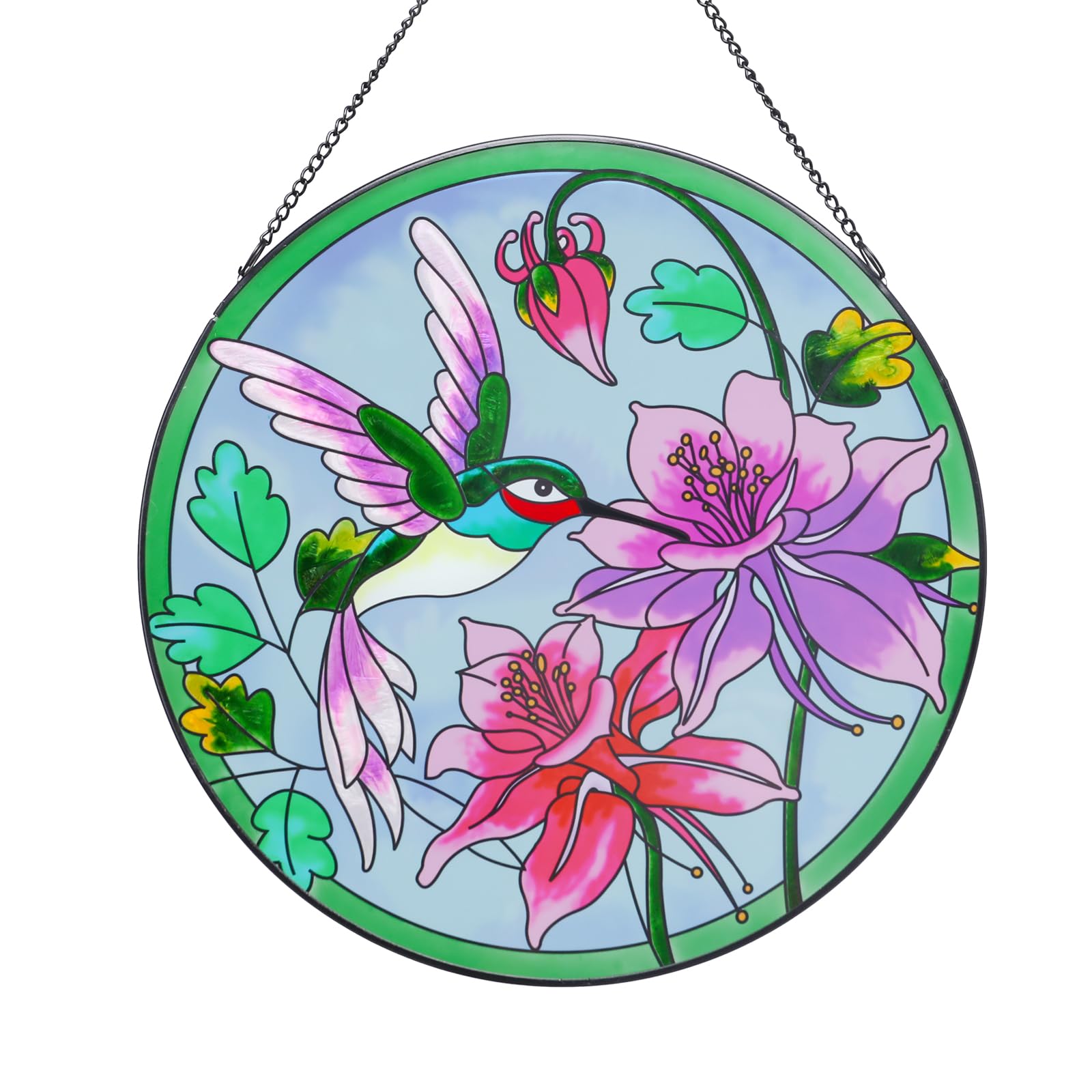 Sollbry 1 pièce de décoration murale ronde en métal pour jardin, salon, décoration murale en... Décoration Murale 3D Forme De Colibri, Art Sculpture Murale 3D Style Vintage Réaliste Sculpture... TopLLC Décoration Suspendue Colibri Coloré Attrape-Soleil Colibri Fenêtre Acrylique Artisanat Décoration Maison Un Pendentif Colibri - Décoration de fenêtre en verre teinté à suspendre
