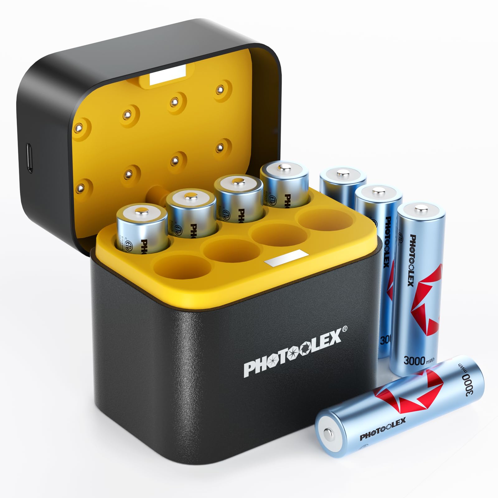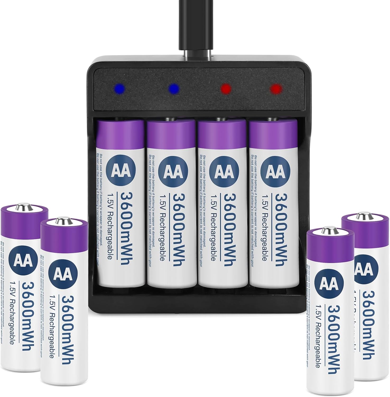 Piles Rechargeables Aaa 1,5 V - Lot De 8 Piles Rechargeables Avec Chargeur Ultra Rapide 2H Grâce à leur technologie lithium, elles ont une durée de vie plus longue et une faible autodécharge. Le chargeur inclus vous permet de recharger facilement vos... Chargeur USB-C 8 Piles 2000 MWh Pilas Recargables Aa Con Cargador Zepath Lot De 8 Piles AA Au Lithium Rechargeables Avec Chargeur, 3600 MWh Haute Capacité 1,5 V, Piles AA Li-ION Rechargeables Longue Durée Avec Boîte De Rangement Piles Rechargeables Lithium Rechargeable au lithium AA : les batteries au lithium AA rechargeables de 1,5 V ont une sortie de tension constante, idéales pour les appareils à forte consommation d'énergie. Elles offrent une alimentation stable de 1,5 V et une durée de vie cinq fois plus longue que les batteries alcalines. Hixon Lot de 8 piles AA rechargeables 1,5 V - Batterie au lithiu AA rechargeable - 3500 Wh... Idéal pour les appareils à forte consommation d'énergie tels que les jouets télécommandés, les contrôleurs, les souris, les radios, les lampes de poche, les pèse-personnes, les appareils médicaux, les appareils électroniques Chargeur LED de type C : fonction 2 en 1 avec charge et mémoire, design compact et élégant pour une nouvelle tendance. Contenu de la livraison : 8 piles au lithium rechargeables imuto AA, 1 chargeur de batterie LED AA à 8 emplacements, 1 câble USB de type C. Entrée : DC 5 V 3 A et sortie : DC 5 V 350 mA x 8., Longue durée de 3000 cycles : la batterie rechargeable au lithium AA de 1,5 V d'imuto peut être chargée et déchargée jusqu'à 3000 cycles.