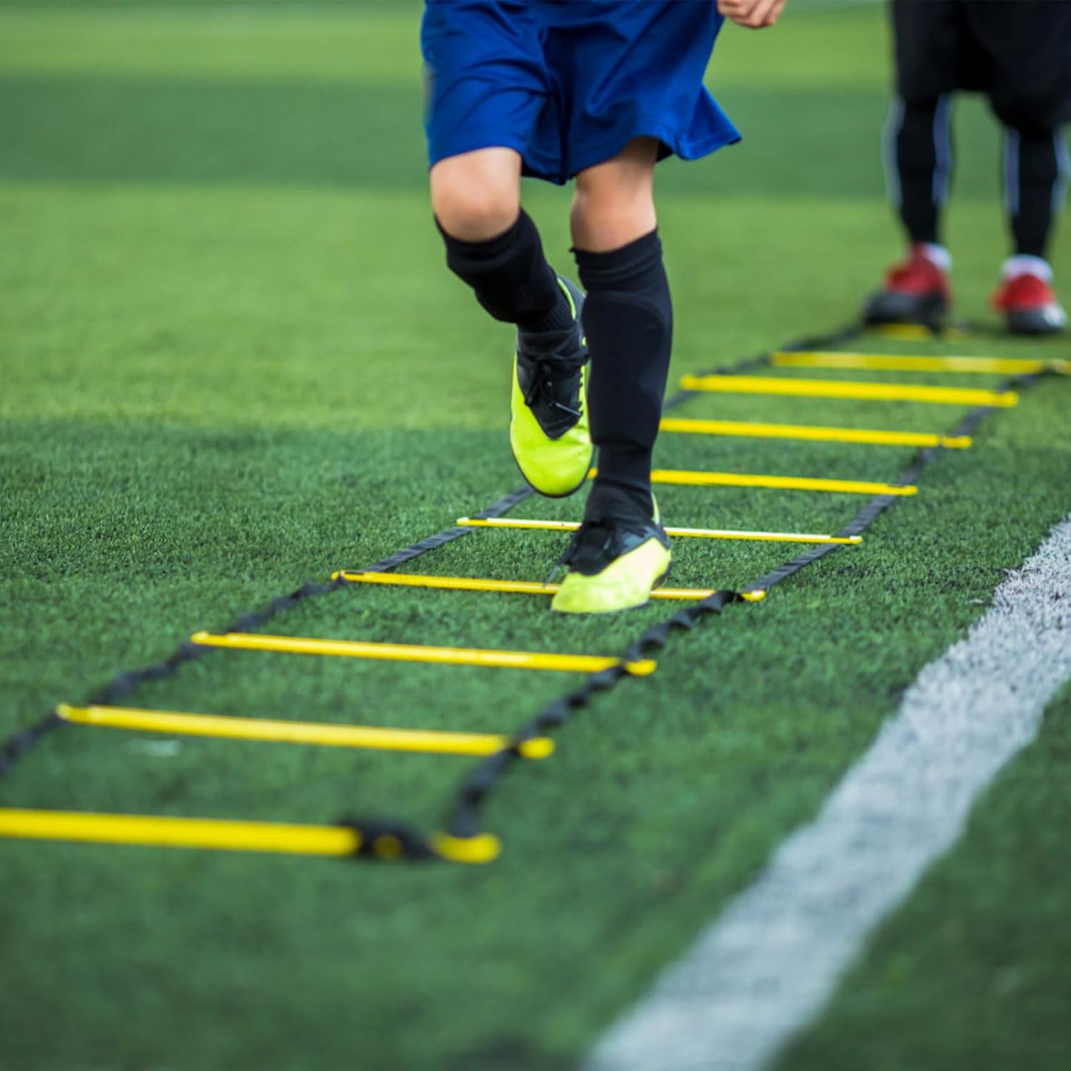 Augmentez vos performances de manière ludique - essentiel pour tout équipement de football ! Entraînement Vitesse Jeu De Jambes Auckpure Accessoires D'entraînement De Football, échelle De Coordination, Kit D'entraînement De échelle Coordination Football Découvrez l’échelle de coordination Apostle – l’accessoire d’entraînement de football ultime pour les joueurs ambitieux ! Idéal pour les exercices de saut, de course ou de marche, cet outil d'entraînement personnalisé permet aux enfants, aux athlètes et aux sportifs de tous niveaux d'améliorer leur endurance, leur équilibre et leur vitesse Intégrez l’échelle de coordination dans votre entraînement de football pour un jeu de jambes optimisé : Idéal pour les tacles, les dribbles et les changements de direction. En tant qu’élément central de votre collection d’articles et d’accessoires de football, il transforme chaque séance d’entraînement en un changement de jeu. Godsale-Échelles d'agilité d'entraînement Échelle de Rythme... Cette échelle de 6 m avec 12 échelons robustes est spécialement conçue comme accessoire d’entraînement de football pour parfaire la vitesse et la coordination des joueurs ambitieux. Cette échelle de coordination de 6 m de haute qualité avec 12 échelons robustes est spécialement conçue pour l’entraînement de football afin de parfaire l’agilité, la vitesse et la coordination. Pas seulement pour le football : combinez cet appareil d’entraînement d’agilité avec des cônes de football ou d’autres composants de kit d’entraînement de football. Échelle d'entraînement à la coordination de 6 m pour En tant qu’élément essentiel de votre collection de vêtements et d’accessoires de football, cet appareil d’entraînement à l’agilité soutient non seulement les professionnels du football, mais convient également au basket-ball, à l’athlétisme ou au fitness. Complétez votre cône d’entraînement de football et vos accessoires de football : L’échelle s’harmonise idéalement avec les cônes pour des parcours variés.