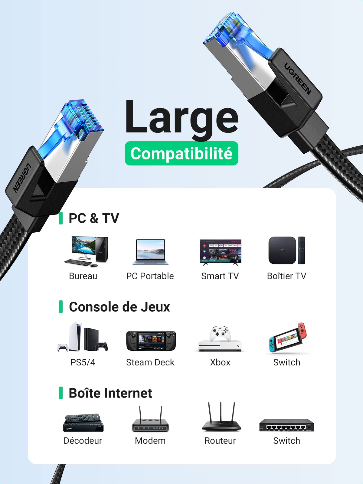 Câble Optique Audio Numérique - UGREEN - 1M - Toslink 10 000+ insertions, vous branchez et débranchez les appareils sans aucun souci. Lecteur Dvd Blu Ray UGREEN 10539 Câble Optique Audio Numérique En Nylon | WhichOne Câble Fibre Optique Home Cinéma Forte Compatibilité Appareils équipés d'un port optique TV, PS3, PS4, Xbox One, Xbox 360, Ampli, Barre de son, Freebox, SFR box, Chaîne HI-FI, Enceinte, Récepteur, Préamplificateur, Platine CD, Lecteur Blu-Ray, Lecteur DVD, DAC, PlayStation, Sound Bar et etc. Le câble optique UGREEN est conçu pour transmettre un signal audio en connectant divers appareils : DVD, TV, lecteurs blue-ray, consoles de jeux, ordinateurs avec TV, systèmes home cinéma, etc. fabriqué à partir de matériaux de qualité - assure la transmission du signal sans interférence UGREEN 10539 Câble Optique Audio Nuérique en Nylon Tressé Cordon Fibre... Protectetion Puissante Boîtier en aluminium permet de sentir l'élégance du métal, il est beaucoup plus résistant à l'usure et à la corrosion. Durable & Résistant 10 000+ flexions, il y a une protection parfaite et une durabilité accrue. Remarque : veuillez confirmer si l'interface HDMI de votre appareil est de 270 degrés avant d'acheter. À l'aide de la fibre optique, le câble Toslink est capable de transmettre le signal audio numérique sous forme d'impulsions lumineuses, qui ne seront pas affectées par les interférences électromagnétiques. La gaine en nylon tressé prolonge sa durée de vie, offrent une protection supplémentaire pour éviter les dommages et l'usure. Qualité Sonore Inégalée Grâce à la Fibre Optique Câble optique vous offre une solution parfaite pour connecter les appareils avec un port Toslink/Optique et profitez d'une expérience sonore excellente.