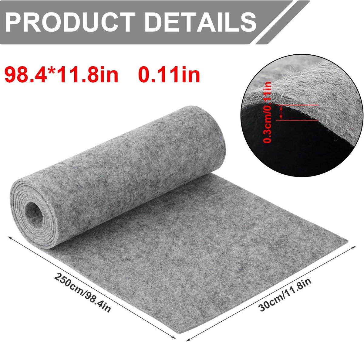 Feutre Polyester épais 2mm Aufodara Rouleau De Feutre, 30 Cm X 250 Cm X 3 Mm, En Polyester, Pour Le Bricolage, Le Sac De Rangement, Le Patchwork, La Couture, Le Bricolage, La Décoration (rouge Bordeaux Rouleau Feutre Insonorisant feutre 20 mm - vendu au mètre Rouleau revêtement adhésif vinyle au mètre - Sticker lavable Cuisine Meuble Armoire Porte... Dimensions Pratiques: Rouleau de feutre de 30 cm de largeur, 3 m de longueur et 2 mm d’épaisseur. Taille adaptée à la plupart des projets de bricolage et de loisirs créatifs. Facile À Découper Et À Utiliser: Le feutre est souple et léger, il se découpe facilement avec des ciseaux ou un cutter, et peut être cousu, collé ou peint. La surface est lisse et uniforme, avec un toucher doux, et conserve sa forme et sa couleur même après une utilisation prolongée Convient aussi bien aux débutants qu’aux passionnés de loisirs créatifs Peut également servir de protection pour les meubles afin de réduire l’usure et d’atténuer le bruit Sobre Et Élégant: Style simple et facilement associable à différents types de décoration intérieure. Feutre geotextile Geotex 125 - 2x 150m - Vendu au metre | Bricomarché