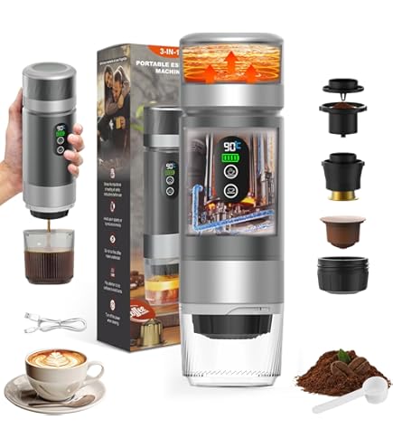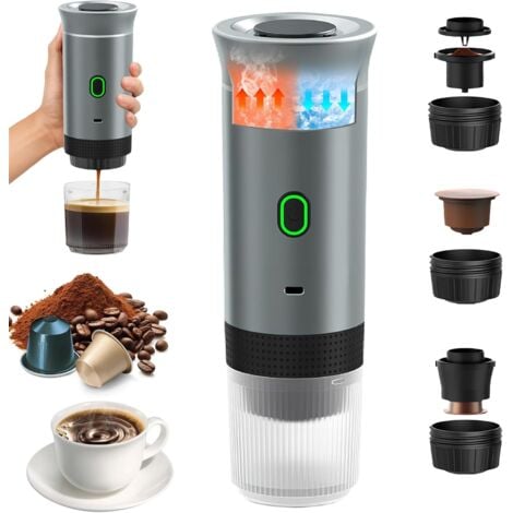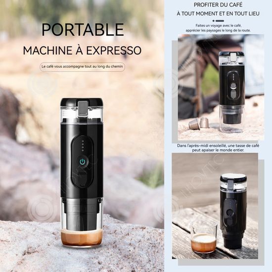 Cafetière Expresso Portable Espresso Portable EVERANGE Machine à Expresso Portable EVERANGE - Auto-chauffante, 20 Bars, Compatible Café Moulu/Capsules | Voyage, Camping, 7500mAh Machine Café Portable Cafetiere Dosette Souple Machine à Café Portable Sans Fil Machine à Café Expresso Portable 3-en-1 Sans Fil - 12V USB-C Pour Voiture Et Voyage Mini Cafetière Expresso Machine à Café Portable, 3 en 1 Cafetière Expresso avec Support et Sac, Batterie Rechargeable 7500mAh, Compatible Capsules et Café Moulu, Pour Voyage... Qu’il s’agisse d’un café chaud ou froid, sa polyvalence vous permet de savourer un espresso de qualité à tout moment, où que vous soyez. Une charge complète permet de préparer 3 à 4 cafés chauffés, ou jusqu’à 50 cafés extraits directement sans chauffage. Léger et compact, il se glisse facilement dans vos bagages tout en protégeant votre équipement. 【Compatibilité 3-en-1】: Équipée d’un système d’infusion 3-en-1, cette machine est compatible avec le café moulu, les capsules NS Original et les grandes capsules DG. 【Compacte et Légère】: Pesant seulement 880 g, cette machine portable allie format réduit et pression professionnelle de 20 bars pour une extraction parfaite, comblant le manque d’un bon café fraîchement préparé en extérieur. Légère et robuste, elle devient le partenaire idéal pour les activités de plein air – camping, randonnée ou voyage. Le cadeau parfait pour tous les amateurs de café. Utilisables avec des capsules expresso ou du café moulu, elles se rechargent facilement via USB. Compactes et fiables, elles sont idéales pour les vacances, le...