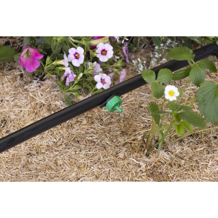Ce réglage précis permet d'optimiser les besoins en eau de vos cultures en limitant les excès et le gaspillage. Avec un angle de 30°, l'eau peut être dirigée directement à la base des plantes, ce qui aide à minimiser l'évaporation et favorise une absorption efficace. Cela est particulièrement bénéfique pour les plantes qui nécessitent un apport constant d'humidité, tout en évitant un arrosage excessif qui pourrait nuire à leur développement. Débit personnalisé: chaque piquet goutteur offre un débit régulier de 2 litres par heure, garantissant un arrosage suffisant pour une variété de plantes. Vous pouvez facilement les intégrer à vos projets d'arrosage existants ou les utiliser pour créer un nouveau système. Irrigation Goutte à Goutte goutteurs 50pcs Émetteurs Micro Jet réglable à 360 degrés Full Circle... Vous pouvez les installer facilement sur des installations existantes ou les utiliser dans de nouveaux projets de jardinage. En maintenant les besoins hydriques des plantations, ils aident à diminuer le gaspillage inutile, soutenant ainsi l'entretien des jardins dans le respect de l'environnement. Un autre avantage important est la conception orientable de ces goutteurs. Tuyau Pour Goutte à Goutté 10 Goutteurs Auto-régulant 2 Litres / Heure Pour Arrosage Goutte à Goutte AROZ - Jardin Système De Goutte Pour Irrigation 5 goutteurs sur pic réglables 0-70 litres / heure pour arrosage goutte à goutte AROZ... Compatibilité universelle: ces piquets goutteurs s’intègrent à divers systèmes d'irrigation. Dimensions: le piquet convient au microtube de diamètre extérieur: Ø5 mm., Poids unitaire: 1., 75 g. Efficacité en irrigation: grâce à ce système goutte à goutte, chaque plante reçoit la bonne quantité d'eau, favorisant ainsi une hydratation équilibrée. Que vous soyez un jardinier débutant ou un passionné, ces goutteurs vous aideront à atteindre un arrosage équilibré et responsable. 10 goutteurs auto-régulant 8 litres / heure pour arrosage goutte à Conception orientable: grâce à l'angle de 30°, les piquets peuvent diriger l'eau directement vers la base des plantes, favorisant un arrosage ciblé. Les piquets goutteurs conviennent à une variété d'applications: vous pouvez les utiliser dans les potagers, les parterres de fleurs, ou même dans les jardinières. Profitez d'un arrosage responsable et efficace en intégrant ces goutteurs dans votre méthode de jardinage. Leur installation est rapide et ne nécessite aucun outil, rendant leur utilisation accessible à tous, même aux jardiniers débutants.