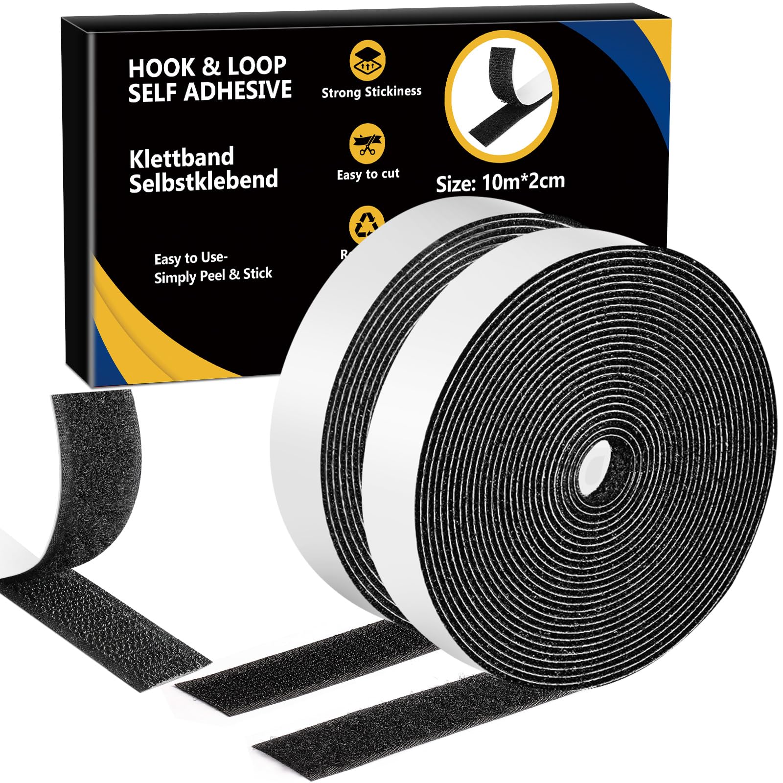Scratch Autocollant Double Face Extra Fort 8m Noir | Rouleau Adhesive à Bricolage Velcro Adhésif Scratch Autocollant Double Face 8 Mètre 20 Mm Rubans Ruban Noir Bande Velcro autocollante extra forte de 8 m, double face, 20 mm de large, crochet double face autocollant, convient pour moustiquaire, cadre photo. Bande... 【Adhésif puissant】Le dos de la bande auto-agrippante est recouvert d'un adhésif puissant qui atteint sa résistance maximale après 24 heures. XIKAYA Adhésif puissant 8m 20mm, Bande autocollant,Scratch autocollant double face pour cadres photos, Moustiquaires, Tapis, Tapis de sol, Fenêtres, Murs... 【Applications】Le ruban auto-agrippant auto-agrippant convient aux murs lisses, aux dessus de table, à l'intérieur et au sol des voitures, et peut être appliqué sur les télécommandes fixes, les rideaux, les prises électriques, les cadres photo, les tapis, les gobelets à brosse à dents, les poubelles, etc. 【Velcro adhésif puissant】Le velcro est dense et les crochets sont pointus, il peut donc être fermement fixé et utilisé à plusieurs reprises.