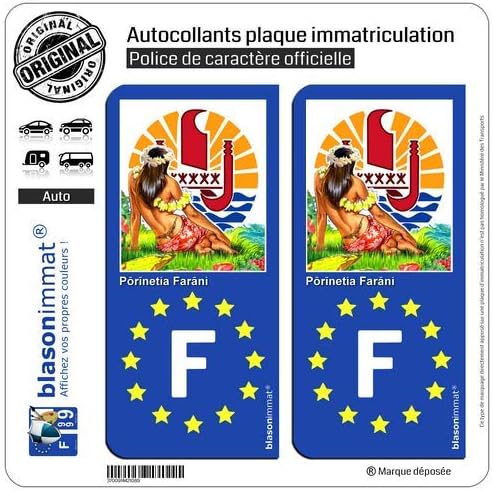 Vinyle Résistant Lavage 2 Stickers Autocollant Plaque Immatriculation 34 Palavas-les Fabriqué En France Blasonimmat Autocollants 34 avec logo officiel région Languedoc-Roussillon pour plaque immatriculation blasoniat 2 Autocollants Plaque iatriculation Auto F Polynésie-Française Vahiné... Ils sont spécialement conçus pour résister à toutes les conditions climatiques (UV, pluie, neige, grêle, gel, sel., ., ., ), ainsi que pour supporter les changements de températures (-40°C à +70°C)-Ils sont plastifiés avec un film de lamination polymère transparent pour une parfaite protection contre l`abrasion et les frottements (Lavages rouleaux et haute pression, insectes., ., ., )-Ils sont livrés directement découpés à la forme., ., ., Pas besoin de ciseaux ! Durabilité 5 à 7 ans en extérieur. Conçus et Fabriqués en France par blasonimmat. Nos stickers sont en vinyle adhésif avec un graphisme haute définition et un rendu exceptionnel. Version pour plaques AUTO - Dimensions Officielles : H 9,80 cm x L 4,50 cm et découpés à la forme avec les angles arrondis. (pour toutes autres dimensions ou formes nous contacter) Réalisés en vinyle adhésif avec un graphisme en haute définition, protégés par un film de lamination polymère contre l'abrasion et les frottements (Lavages rouleaux et haute pression, insectes., ., ., ) Planche de 2 logos de 10,2x4,6cm, pré-découpés, prêts à poser. Tous nos adhésifs sont protégés par un film anti-UV. Stickers et autocollants de la marque...
