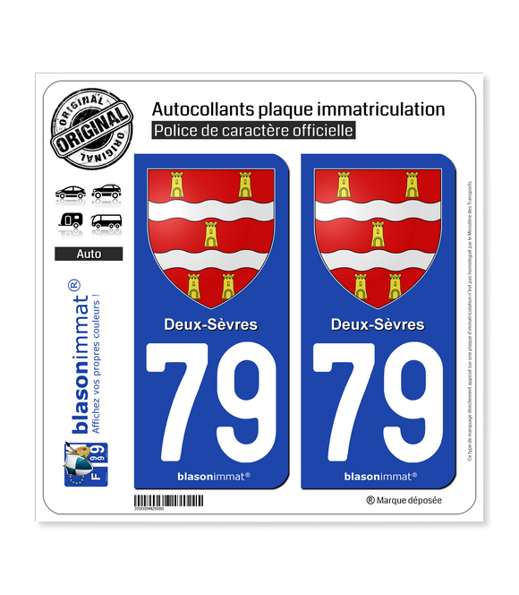 Réalisés en vinyle adhésif avec un graphisme en haute définition, protégés par un film de lamination polymère contre l'abrasion et les frottements (Lavages rouleaux et haute pression, insectes., ., ., ) Autocollant Plaque Immatriculation 79 Deux Sèvres Noir Auto Sticker Lot De 4 Sti Autocollant Voiture Officiel Autocollant 79 département des Deux Sevres - Autocollants départements Autocollant plaque immatriculation blason département stickers 79 Deux-Sèvres Nouvelle Aquitaine blasonAutocollants Stickers aux dimensions des plaques d'immatriculation du département 79 blason et conforme aux dimensions des plaques d'immatriculations d'origines pour voiture auto. 79 Deux-Sèvres autocollant plaque immatriculation auto département sticker Nouvelle Aquitaine blason - Couleur : blanc - Angles : arrondis. Prix : 3.99... 79 Deux-Sèvres autocollant plaqu Autocollant pour plaque d'immatriculation, de qualité supérieure, professionnelle résistent aux : - Lavages haute pression (karcher, rouleaux, rayures) - Rayons UV - IntempériesGarantie 7 ans, nos autocollants sont certifiés CE, et sont fabriqués en FranceDimensions : aux dimensions officielles des plaques d'immatriculation voiture : 4,5 X 9,8 cmquantité : 2 autocollants