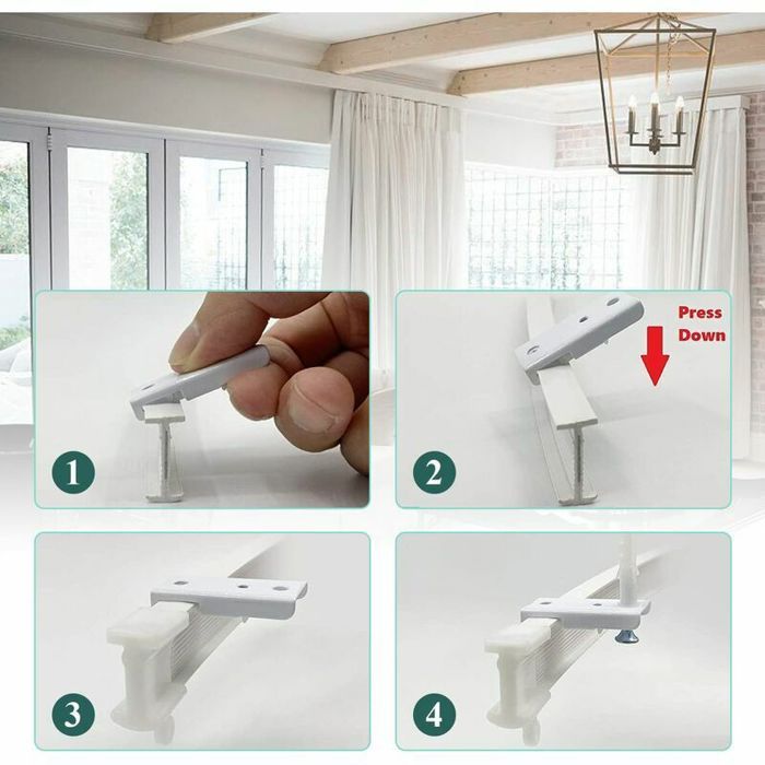 Lot de 30 crochets de rideaux, crochets de rideaux sans perçage,tringle... - **Contrôle de la lumière et de la vie privée :** Bloque efficacement la lumière tout en assurant votre intimité. Rails de rideaux autocollants : profitez d'une installation sans tracas avec nos rails de rideaux haut de gamme dotés d'un adhésif puissant. Parfait pour améliorer l'ambiance dans le salon, la cuisine ou le bureau. Pas besoin de perceuses ou de vis, il suffit de décoller et de coller sur une surface propre. Cette tringle à rideaux innovante dispose d'une combinaison transparente de rouleaux et de rails de guidage, assurant un fonctionnement fluide et silencieux qui améliore votre environnement sans perturbation. Évitez l'installation sur du papier peint, dans la salle de bain ou sur des surfaces inégales pour une performance optimale. Rail Rideau 3m Rail Rideau Autocollant 3m - Montage Sans Perçage Durable et robuste : nos rails de rideaux autocollants sont fabriqués à partir d'un matériau composite de qualité supérieure, assurant résistance et longévité pour supporter une variété de types de rideaux. - Les mesures étant prises à la main, les tailles indiquées peuvent varier légèrement (1-3 cm). Tringle à Rideaux Adhésive Tringle à Rideaux Autocollante Sans Perçage - Tringle à Rideaux Droite Secodir Tringles Deco **Remarques importantes :** - En raison des restrictions d'expédition, les rails de plus de 1,1 m seront expédiés par sections. - Les images du produit reflètent l'article réel, mais il peut y avoir des différences dues à la lumière et aux paramètres de l'appareil. - **Design autocollant :** Cette tringle à rideau est facile à installer, vous permettant d'améliorer votre espace en un rien de temps. Rail De Rideau en Aluiniu, Rail pour Rideaux Kit, Rail Rideaux... Idéal pour les rideaux en tissu lourd, il suffit de les fixer et de les laisser reposer pendant 24 heures avant de les accrocher pour une meilleure performance. Découvrez le mélange parfait de style et de praticité dès aujourd'hui Instructions d'installation : le rail doit être monté sur un mur ou un plafond lisse. Accrochez également les paravents sans effort, ce qui fait de ces rails un ajout polyvalent à votre décoration d'intérieur. Veuillez vous référer au produit pour une représentation précise. Convient pour les salons, salles de douche, chambres, plafonds, baies vitrées, rails de rideaux de camping-car, hôtels, hôpitaux, cabines de classe, ou partout ailleurs que vous préférez