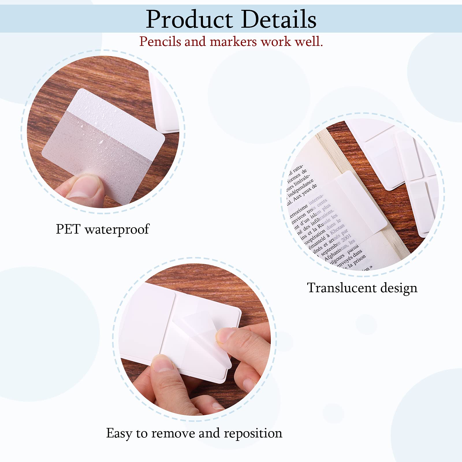 Applications : les onglets d'index peuvent être utilisés à de nombreuses fins, utilisés comme marquage des points clés et difficiles lors de l'apprentissage, et peuvent être utilisés pour classer ou organiser différents documents pendant le travail. Accessoire Bureau étudiants Professionnels Lot De 360 Onglets Autocollants Inscriptibles Pour Cahiers, Classeurs étiquettes Index Transparentes écriture Contenu de l'emballage : 360 pièces/30 étiquettes d'index. Template Storyline 360 : onglets interactifs colorés - Articulate Contenu de l'emballage : 360 onglets adhésifs en 18 couleurs, petite étiquette de 2,5 x 2,5 cm, 3 ensembles de couleurs différentes, couleur claire et couleur rétro, plusieurs couleurs, plusieurs choix, vous permettant de coder et d'organiser efficacement vos notes, documents et planificateurs Veuillez prêter attention à déchirer l'étiquette d'index en parallèle, la retirer doucement, et ne pas utiliser de force. Onglets adhésifs : chaque paquet comprend 600 onglets adhésifs de 5 x 4 cm en 10 couleurs fluo et 5 couleurs de 4,5 x 1,2 cm, vous donnant beaucoup... Ils sont également parfaits pour les étudiants, les professionnels et toute personne ayant besoin de rester organisé. Poids (g) : 52,6 Taille du produit (cm) : feuille entière : 20 x 6 cm, simple : 2,2 x 2 cm. Ces onglets adhésifs sont parfaits pour une utilisation dans les livres, cahiers, dossiers et fichiers 1500PCS arque Page Adhésif Autocollantes Onglets d'Index Étiquettes d Ces onglets adhésifs sont parfaits pour une utilisation dans les livres, cahiers, dossiers et fichiers. Design transparent : la moitié de la languette adhésive du livre est transparente, avec autocollant, il n'obscurcit pas les caractères, et l'autre moitié peut être écrite pour vous aider à mieux marquer et organiser les documents