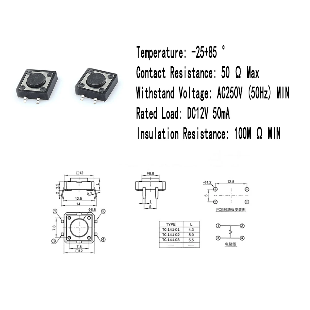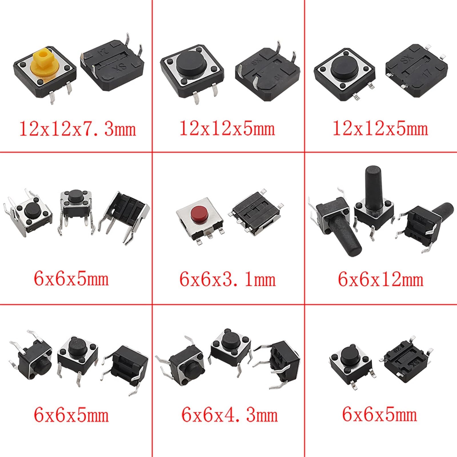 Micro-interrupteurs Momentanés 4 Broches Interrupteur à Bouton-poussoir à Verrouillage Automatique Petits Interrupteurs Alimentation 25 Pieces 24 V 5 A Pour Equipement Automatisat 95246384 Kit Interrupteurs Tactiles PCB DIY Achetez 250 pièces/boîte Micro interrupteur assortiment bouton poussoir interrupteurs tactiles réinitialiser 25Types Mini interrupteur à feuilles SMD DIP... Bouton Poussoir Smd Boutons Poussoirs SMD 6x6x4.3mm - Lot De 5 - 4 Broches - Pour Circuits Imprimés Bouton 4 Pins Smd Emballé avec une boîte de haute qualité, qui peut organiser des boutons de différentes couleurs. EJ.life bouton poussoir Lot de 25 interrupteurs à bouton-poussoir AC 0... 【Large utilisation】 : ce kit convient aux amateurs d'électronique pour les produits de bricolage, peut être utilisé pour les clés de produit électroniques, les clés d'imprimante, les clés de téléphone portable, les clés d'affichage d'ordinateur, etc. 【Kit d'assortiment Tact】: Le micro-interrupteur à bouton-poussoir tactile momentané est composé d'excellents matériaux ABS et acier inoxydable, peut atteindre 40 000 fois dans un environnement 12V DC, avec une longue durée de vie. Les capuchons colorés vous permettent de distinguer les boutons, c'est-à-dire si votre projet comporte plusieurs boutons. 【Haute précision】 : ces interrupteurs à bouton adoptent une conception de mécanisme de haute précision, qui est flexible en fonctionnement.