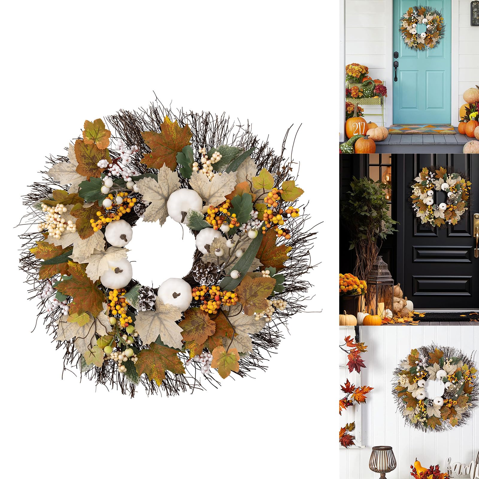 Couronne De Porte D’Automne,Guirlande D'Automne Aux Couleurs... accueillez vos amis et votre famille avec cette couronne, couronne de ferme Couronne murale artificielle : avec une excellente finition et des détails délicats, vive et jolie, pas facile à décolorer et à porter, de porte pour porte d'entrée Décoration Saisonnière Maison Jardin Zerodeko Décorative Avec Citrouille Et Couronne Porte Automne Décoration murale : vous pouvez utiliser une corde pour attacher la couronne ou la suspendre au crochet. Description du produit Contenu de l'emballage : 1 couronne. Caractéristiques : - Matériau : couronne extérieure en plastique. - Couleur : décorations multi-récoltes. - Informations sur le produit : guirlande de porte à suspendre. - Taille : 40 x 40 x 5 cm - Couronne d'automne moderne - Les feuilles artificielles réalistes et vives sur la couronne peuvent donner aux gens de bonnes... Couronne suspendue pour porte d'entrée : superbe décoration pour jardin, la terrasse, salon, la clôture, de thanksgiving ou n'importe , de thanksgiving Zerodeko Couronnes de Bienvenue en métal à Suspendre en Forme