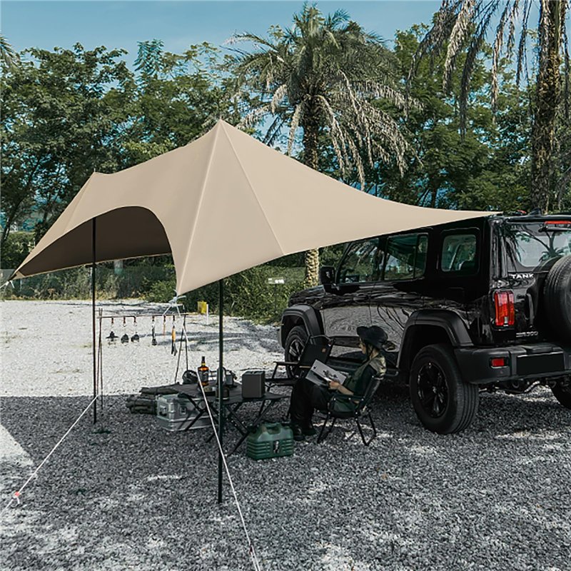 Fabriqué à partir d'un tissu Oxford 210D avec un revêtement PU 5000 mm, cet auvent résiste aux fortes pluies et aux rayons UV (UPF 50+), tandis que ses coutures renforcées et ses poteaux en aluminium antirouille résistent à des vents de 72 km/h, ce qui le rend idéal pour le climat imprévisible du Royaume-Uni. Tous nos auvents indépendants sont équipés d'une paroi arrière entièrement fermée, avec porte zippée pour un accès facile. Nous proposons une large... Quatre sangles anti-vent sont présentes sur un côté pour maintenir la position et empêcher la chute. Dimensions : 180 x 114 cm, 176 x 114 cm., Couleur : noir. Accessoire Camping Voiture AUVENT DE TENTE Saree - Auvent De Jardin-Auvent De Pique-nique-Décor Auvent Avec Sac Rangement Matériau imperméable : fabriqué à partir de tissu Oxford imperméable qui est à la fois résistant aux UV et respirant pour une utilisation durable dans diverses conditions. * Léger et compact : le design léger du pare-soleil de porte arrière de la caravane permet un rangement et un transport faciles, ce qui en fait un compagnon essentiel pour les voyages, le camping et les pique-niques en plein air. Léger et compact : son design léger permet un transport et un rangement faciles, ce qui en fait un accessoire essentiel pour votre équipement de camping. Le toit incliné avec des gouttières empêche l'accumulation d'eau, tandis que les bandes réfléchissantes améliorent la visibilité nocturne. Le tissu thermostable (-10 °C à 60 °C) garantit des performances optimales dans les Highlands écossais ou lors des festivals d'été. Matériau : tissu Oxford. Contenu de l'emballage : 1 pare-soleil. Pour profiter de vos séjours en fourgon aménagé en camping-car, voici une gamme de auvents arrière à fixer sur le hayon (le coffre) ou les portes arrières du véhicule Caractéristiques : Nom de la pièce : pare-soleil de porte arrière de camping-car. Rangement pratique : livré avec un sac de rangement. Auvent thermique arrière pour fourgons et fourgonnettes