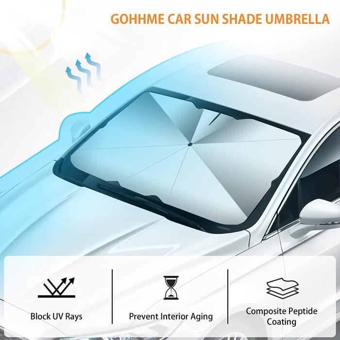 Pare-soleil voiture - GENERIC - Parapluie pare-brise - 53x31 pouces - Bloque chaleur et UV - Facile à ranger Pare-Soleil Forme Parapluie Pliable Pour Pare-Brise De Voiture ; Fonctions : Résistance à l'usure, résistance au vieillissement ; Taille : Environ 155 x 78 cm... Pare Soleil Parapluie Pare Soleil Voiture Pare Brise Avant Pour Protection UV, Parapluie De Couverture Pare Brise Voiture 【Pare Soleil Voiture Pare Brise Avant】-- Ce pare-soleil pour pare-brise est doté d'un axe rotatif à 360°, ce qui facilite le réglage et prévient les rayures sur le tableau de bord. 【Protection solaire et fraîcheur】-- Ce pare-soleil est conçu pour bloquer la chaleur intense du soleil et les rayons UV nocifs afin de protéger les composants électroniques, le tableau de bord, le cuir et les sièges de votre voiture, d'empêcher la décoloration et les fissures, et de préserver la fraîcheur et l'état neuf de votre véhicule ! Pare Soleil Voiture Pare Brise Avant 140 x 80 cm. Parapluie Soleil SUV et Camion Pare-soleils pour Pare-Brise Avant Auto résistant aux UV avec revêtement en... 【Protection thermique et anti-UV】 -- Ce pare-soleil pour pare-brise, doté d'un revêtement adhésif argent titane et d'un polyester composite, réfléchit efficacement les rayons du soleil, bloque la chaleur et 99 % des rayons UV, prévient la décoloration et les fissures de l'intérieur de la voiture, maintient votre voiture au frais et préserve votre intimité. 【Facile à utiliser et à ranger】-- Ce pare-soleil pliable fonctionne comme un parapluie classique et s'ouvre et se ferme très facilement. Avec ses dimensions universelles de 83 cm (largeur), 145 cm (longueur), il bloque efficacement les rayons du soleil et protège l'intérieur de votre voiture. Il se replie dans le sac en tissu inclus pour un rangement facile et un gain de place dans votre voiture.