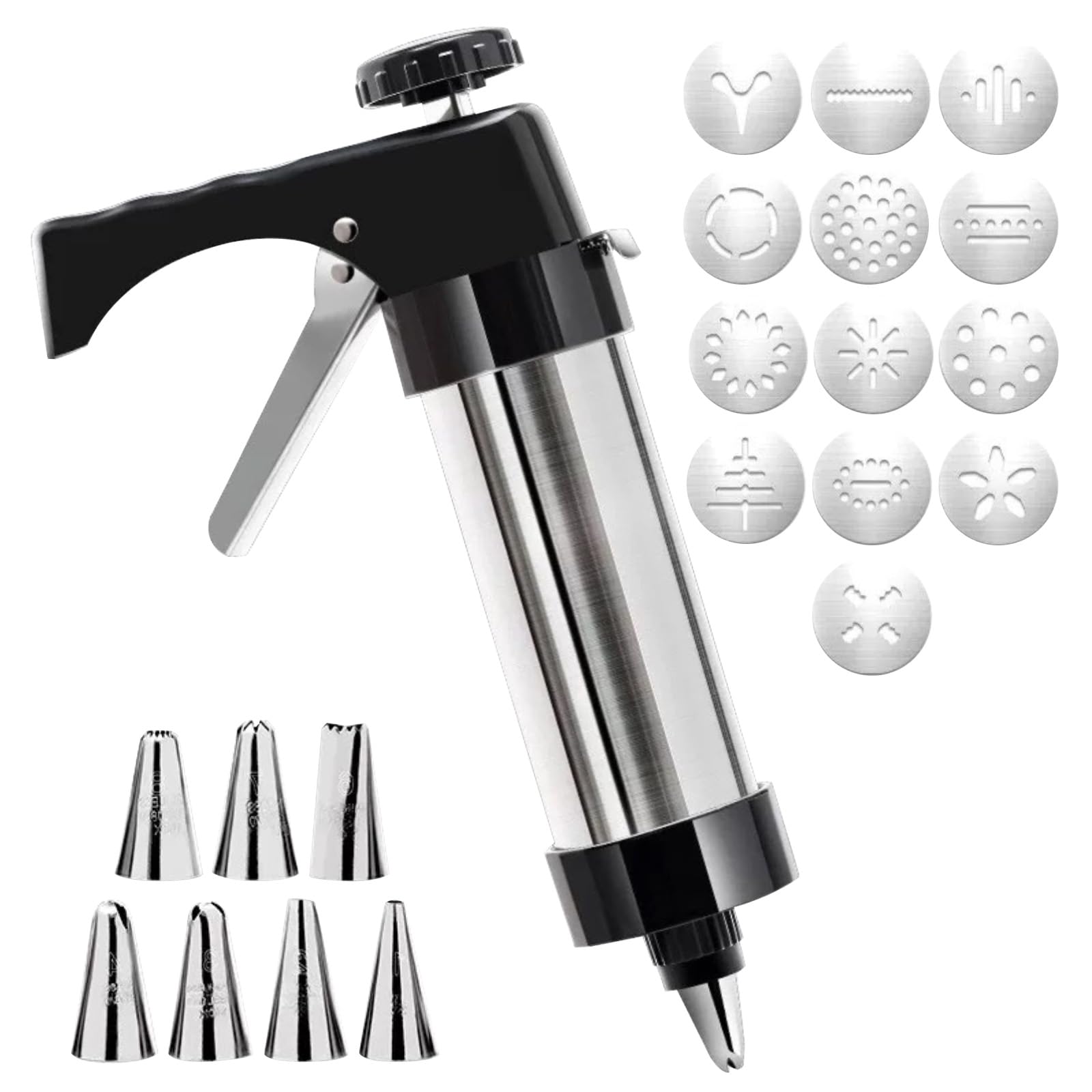 Presse à Pâtisserie Professionnelle avec 16 Gabarits Presse À Biscuits Pistolet À Pâtisserie Machine Douilles De Glaçage Stylo De Décoration Kit De... Machine Churros QWORK® Pistolet De Presse à Biscuits En Acier Inoxydable, Presse à Pâtisserie Avec 13 Disques Biscuits Et 8 Douilles, Presse à Biscuits Pour Les Amateurs De Pâtisserie Machine à Churros Et Décorations 🍪【Ensemble de presse de boulangerie à injection】: Presse à dos intégrée et décoration - 16 formes et 8 tuyères montées avec sac de cadre TPU + brosse de nettoyage peuvent répondre à vos différents besoins, Vous pouvez utiliser les nozzles en acier inoxydable pour faire toutes sortes de belles décorations pour votre gâteau, c'est un très bon outil de cuisson. 🍪【Facile à utiliser】: Placez simplement la pâte dans la presse à biscuits, montez la forme/tuyère souhaitée, fixez l'anneau de pincement et appuyez sur la poignée pour l'extraire. Accessoires de pâtisserie pour presse à pâtisserie, presse à biscuit et seringue décorative... La poignée se presse facilement et a une surface d'appui plus large, il n'est pas facile à casser, pratique et durable. 🍪【Facile à nettoyer】: Toutes les pièces de la presse à biscuits peuvent être décomposées et lavées dans la lave-vaisselle. Vous pouvez faire du pain avec des amis lors de fêtes, fêtes, Thanksgiving, fêtes de Noël et autres occasions 🍪【Application large】: Il peut être utilisé pour une variété de pâtisseries telles que les biscuits, gâteaux, pommes frites, pâtes frites, etc., établir.