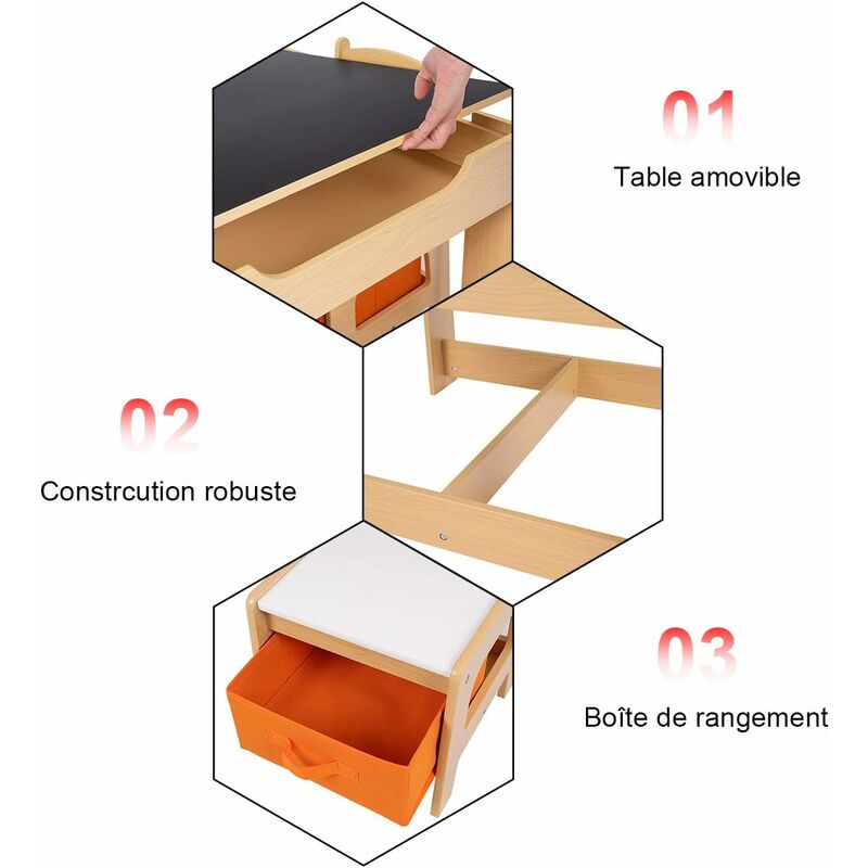 Table D'Enfant Ronde Avec 4 Chaises - Bois De Peuplier Et Bois De Bouleau Style Scandinave Pour Enfants 4 Ans Colore Il est doté d'un plateau réversible 2 en 1 qui peut être transformé en table à jouets, en table d'écriture, en table à dessin ou même en table à manger.Cet ensemble est équipé d'une chaise ergonomique avec un dossier profilé qui aide à protéger la colonne vertébrale de votre enfant Table A Manger COSTWAY Table D'enfant Avec 2 Chaises, 2 En 1 Table D'enfant Pot Bebe Toilette 🎈【Table et 2 chaises】: La table mesure 70×70×50cm et la chaise 34×34×50cm. Les boîtes sont facile à nettoyer et déplacer. Et en dessous, un grand compartiment de 60x60 cm pour ranger puzzles, livres ou jouets. Les chaises ont aussi des tiroirs en tissu amovibles. Le top ? La... Ils sont léger et facile à déplacer. 🎈【Matériel sûr & sécurisé】: La table et 2 chaises sont fabriqué en matériau PE durable. La surface est imperméable et résistante aux taches. 🎈【Forte capacité de charge】: Les pieds en forme de X et les ventouses antidérapantes rendent le cadre de la table très solide et stable., Charge 80kg.