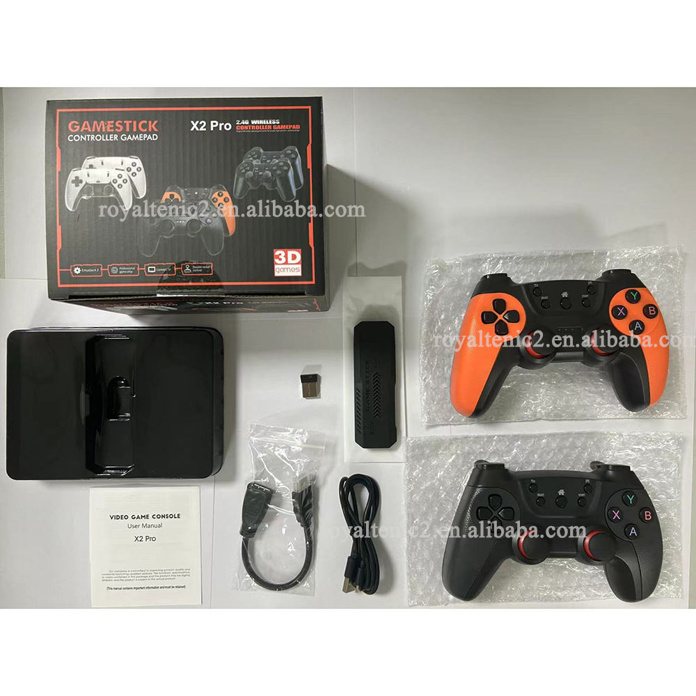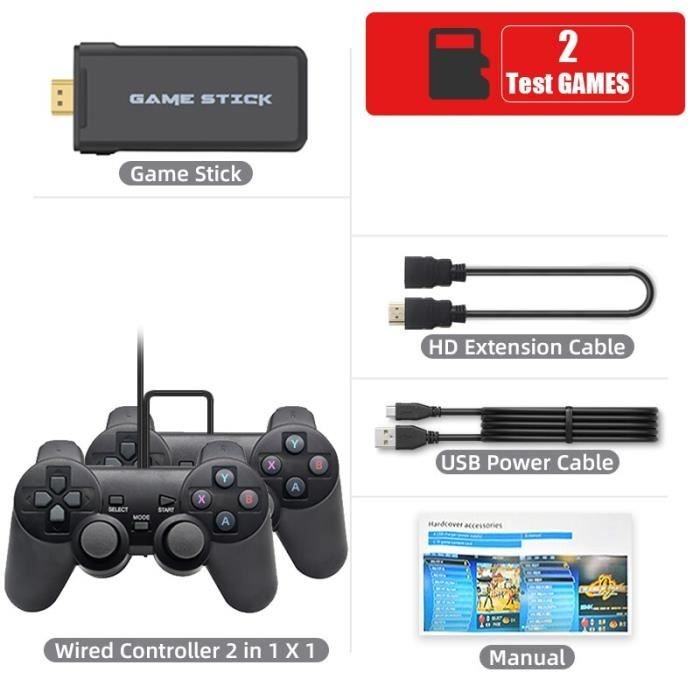 Manettes Sans Fil 2.4GHz 128Go X2 Ultra 4K Retro Game Stick, Console De Jeu Vidéo HD Avec 2 Manettes Sans Fil, Sortie HDMI, Plus De 37 000 Jeux Intégrés (128 Go Console 128 Go NEW X2 Plus Retro Video Game Console 4K HD Output Gamestick Emuelec 2 Description du produit Caractéristiques : Nom : Console de jeux vidéo X2 Plus. 128 Go, 41 000 jeux, Édition God of War (peut jouer à God of War) * Système: Emuelec 4.3 * Prend en charge les jeux 3D plus grands. Caractéristiques : fonction de recherche, fonction favoris, fonction de sauvegarde de la progression du jeu. * Prend en charge la sortie HD 4K Manette sans fil Aucun appairage complexe n’est requis : connectez-vous et jouez. Plus de 40 000 jeux rétro : La carte TF de 128 Go contient plus de 40 000 jeux classiques issus de plus de 40 émulateurs. Les fonctionnalités incluent la recherche de jeux, la liste des favoris, la sauvegarde et le chargement de la progression, ainsi que l’ajout de nouveaux jeux à la volée, la rendant idéale pour revivre des souvenirs nostalgiques. Manettes sans fil doubles 2,4 GHz : Équipées de deux manettes sans fil 2,4 GHz, elles offrent une connexion rapide et stable avec une latence quasi nulle. Sortie HDMI 4K pour une qualité d'image impeccable : Prise en charge de la sortie HDMI 4K pour une connexion facile aux téléviseurs, projecteurs, ordinateurs et autres appareils. [Divertissement à domicile et cadeau idéal] Avec son design compact et portable et sa disposition des boutons personnalisable, elle est idéale pour les réunions de famille, les divertissements pour enfants ou les soirées jeux nostalgiques entre amis. C'est également un cadeau idéal pour les amateurs de jeux rétro. Cette boîte de jeu est le compagnon idéal pour occuper les enfants, améliorer la coordination œil-main, apporter plus de plaisir à vos réunions de famille et rendre votre maison plus confortable