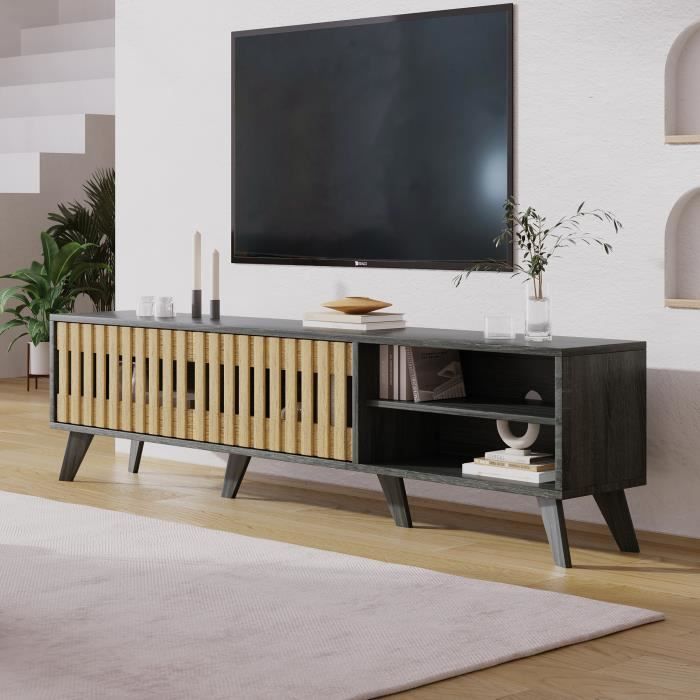 Maison Du Monde Meuble TV Avec 2 Portes Et 2 Tiroirs - 170 X 40 X 50 Cm - Bois MDF Meuble Tv Noir Et Bois Meuble TV avec 2 portes, 1 tiroir et 1 niche - 180 x 40 x 47 cm - bois... Meuble TV avec 4 portes et éclairage - Collection PERLE NOIRE 【Structure en panneau dense】Fabriqué en panneau de particules (PB) robuste, avec finition mate blanche résistante aux rayures et facile à entretenir avec un chiffon doux. Meuble Banc TV - 180 x 40 x 44 cm - avec 4 portes - pieds sphériques... 【Montage simplifié】Livré avec notice illustrée et outils nécessaires, l’assemblage s’effectue étape par étape, sans besoin d’équipement supplémentaire. Veuillez patienter 3 à 5 jours ouvrables. 【Compartiments fonctionnels】Deux portes cintrées et une étagère coulissante permettent de ranger consoles, routeurs, télécommandes, CDs ou petits accessoires, pour un intérieur ordonné. Il est normal que ces 2 colis ne soient pas livrés en même temps.