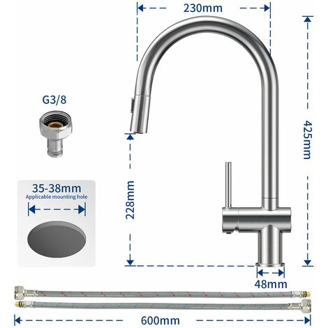 Les tuyaux d'alimentation en eau chaude et froide mesurent 60 cm de long et fournissent de l'eau sans plomb et sans métaux lourds. Douchette Evier Cuisine CECIPA Robinet De Cuisine Haute Pression Noir Avec 2 Types De Jet, Robinet De Cuisine à Arc Haut Avec Douchette Rétractable, Robinet à Ressort Hélicoïdal, Noir Rotatif à 360°, Robinet D'évier à Robinet Cuisine Extensible ARMATEUR DE CUISINE ÉCONOMIE D'EAU : les robinets de cuisine extensibles disposent d'un mousseur ABS qui permet d'économiser jusqu'à 40 % d'eau. Installation facile : le tuyau et les conduites d'eau sont déjà préinstallés dans le robinet de cuisine, ce qui vous permet de gagner beaucoup de temps sous l'évier - aucun plombier n'est nécessaire. Nous fournissons un ensemble complet d'accessoires ainsi que des vidéos d'installation afin que vous puissiez monter votre robinet de cuisine en acier inoxydable rapidement et facilement. La surface en acier inoxydable brossé est inoxydable, facile d'entretien et s'intègre harmonieusement dans n'importe quel décor de cuisine, que ce soit classique, moderne ou intemporel. Robinet de cuisine, CECIPA Acier Inoxydable Robinet De Cuisine Noir 360° Pivotant Mitigeur Cuisine Noir Installation Simple, Robinet d'évier Cuisine Haute Pression avec Bec Haut La cartouche en céramique assure une utilisation sans gouttes et sans fuite, tandis que la surface facile d'entretien reste toujours hygiénique et sans taches. FLEXIBILITÉ & DOUCHE EXTENSIBLE : le robinet de cuisine avec pommeau de douche extensible convient aux éviers simples et doubles et s'adapte parfaitement aux éviers en acier inoxydable ou en pierre de quartz. Il est résistant à la rouille, aux traces de doigts et facile d'entretien. Le design unique de fixation triangulaire garantit que le robinet ne bouge pas. S'adapte également parfaitement à d'autres appareils de cuisine et éviers. INSTALLATION ET ENTRETIEN FACILES : Le robinet cuisine douchette est livré avec tout le matériel nécessaire, un guide d'installation étape par étape et une vidéo, ce qui facilite l'installation CECIPA Robinet Cuisine Noir, Mitigeur Cuisine Rabattable Sous Fenêtre... La douchette extensible à deux types de jet – jet doux et jet puissant – s'adapte de manière flexible à n'importe quelle tâche. Que ce soit moderne ou classique, ce mitigeur allie un design élégant et des fonctions pratiques et est le complément idéal à toute cuisine. Le pommeau de douche est extensible jusqu'à 40 cm, et le robinet peut pivoter à 360 degrés d'une seule main, ce qui vous permet de nettoyer facilement tous les coins de l'évier et d'augmenter l'efficacité du travail dans la cuisine. Découvrez le confort et la fonctionnalité dans votre cuisine avec notre robinet de cuisine extensible en acier inoxydable 304., Le matériau de haute qualité est antirouille, résistant à la corrosion et garantit une longue durée de vie, parfait pour un usage quotidien.