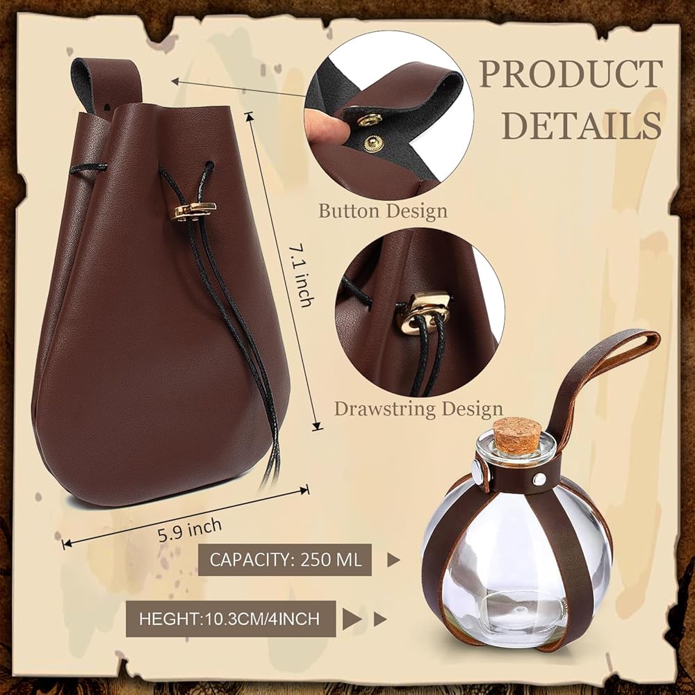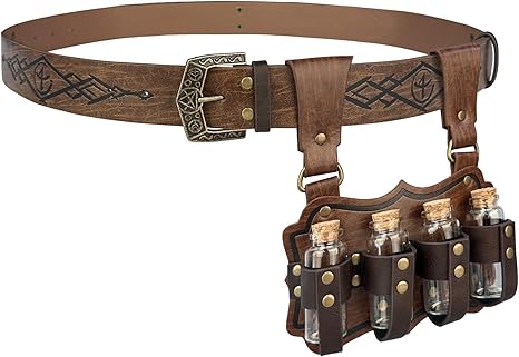 Maquillage Viking │ Les 30 Plus Belles Réalisations Look authentique : élégance médiévale avec ce banane renaissance, un médiéval steampunk qui complète magnifiquement votre ceinture ou votre tenue d'Halloween Sac Alchimie Style Viking Nordique Alchemy Sac Banane Médiéval En Similicuir Avec 4 Fioles De Potion En Liège Style Nordique Viking Renaissance Magicien Accessoires D'Halloween Sac Décoratif Thème Magicien Potion Spécification :Matériau : cuirCouleur : marron foncéPoids : 310 gL'emballage comprend :1 x sac ceinture en similicuir d'alchimie médiévale Taille unique pour tous. Sac du Sorcier Médiéval, type sac banane, en cuir - Grenat ⚔️ Boutique... Ce sac de potion de magicien médiéval est fabriqué avec des matériaux résistants à l'usure et du similicuir avancé pour un look élégant et authentique. Vous pouvez l'attacher à votre ceinture. Le sac de potion de magicien médiéval offre des compartiments uniques pouvant contenir jusqu'à 2 bouteilles d'alchimie et une zone de rangement pour les flacons d'accompagnement. Confortable et adapté à tout moment et en tout lieu.