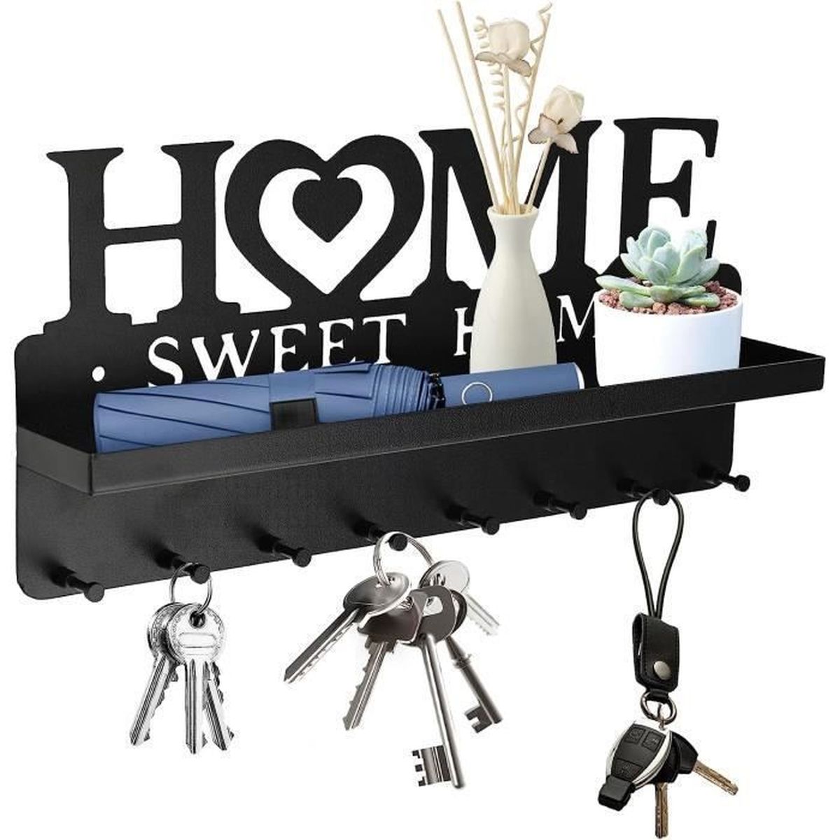 Porte Clef Mural, Accroche Clé Mural, Multifonctionnel Porte Cles Mural En Metal Rangement Clef Avec 5 Crochets Pour Decoration Murale Entree 99255215 【6 crochets à clés】 Êtes-vous toujours pressé de trouver vos clés en partant ? Notre porte clef mural est la solution idéale pour vous. Porte Clé Leroy Merlin Hoomast Porte-clés Mural Avec 6 Crochets – Porte-clés Pour Boite A Clef Decorative Avec ce crochet mural, tout est maintenu en sécurité - non seulement vos clés, mais aussi vos vêtements., Pratique et solide. Avec ses 6 crochets, il est idéal pour être monté dans l'entrée ou à proximité de la porte, permettant ainsi de garder vos articles essentiels à portée de main et d'éviter l'encombrement Matériau de haute qualité : les porte clé murale sont fabriqués en acier au carbone robuste, avec un traitement de peinture en aérosol lisse et antirouille pour... 【Cadeau idéal】 Le accroche clé mural noir est le cadeau parfait pour différentes occasions : pendaison de crémaillère, anniversaires, jeunes mariés, amis et famille. 【Installation simple】 Le porte-clés est livré avec deux trous pré-percés pour une installation sans tracas. Alliant fonctionnalité et esthétique, c’est un choix idéal pour faire plaisir à vos proches. 【Matériau de haute qualité】 Le porte clé mural est fabriqué en métal massif, recouvert d’une poudre spéciale pour une durabilité exceptionnelle. 【Décoration intérieure élégante】 Le accroche clef mural moderne avec la mention MY LOVE HOME est à la fois pratique et esthétique. Description du produit Spécification: Matériau : Fer Dimensions : comme indiqué sur la photo Quantité : 1 Couleur: Noir L'emballage contient : 1 * Porte-clés d'entrée Avertissement De Sûreté Assurez-vous que le porte-clés est monté en toute sécurité pour éviter les chutes et les blessures potentielles.