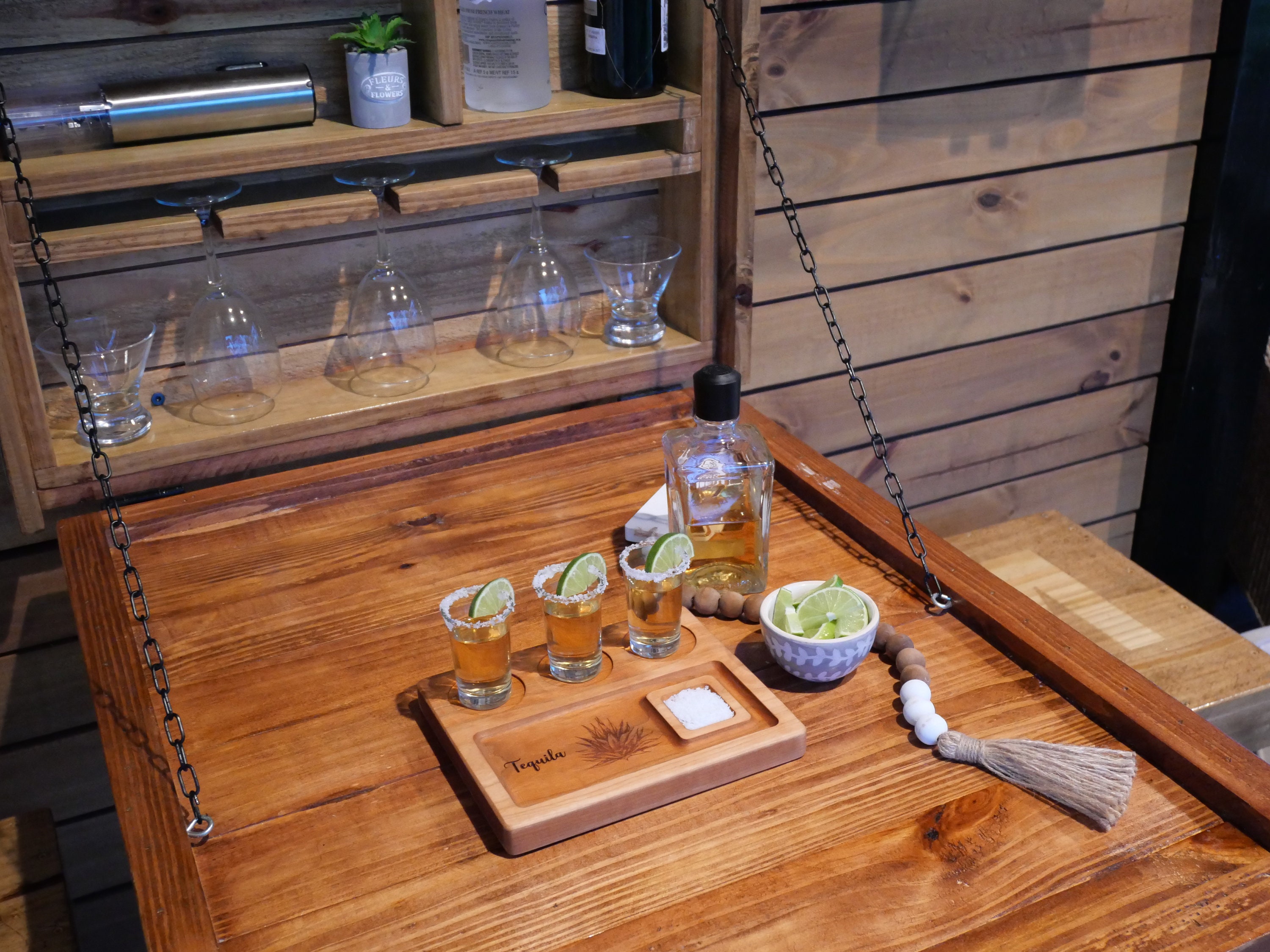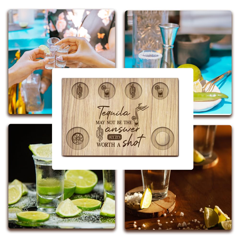 BENECREAT Verre à Shot Tequila, Plateau de Verre à Shot en Bois Préférez le verre à shot mexicain vaisselle artisanale... Plateau Rangement Verres Shot Plateau De Service Avec 6 Verres à Shot - Shooters Bois Liqueur Alcool Porte Verres Mexicain Sand Hammer Plateau de service pour verres à shot de tequila mexicains BENECREAT Sand Hammer, Porte-verre en bois avec bord de sel, planche à verres à Shot pour Bar, restaurant, fête, Réunion de famille Le plateau en verre convient aux petits verres; C'est aussi un accessoire pour les bars, Restaurants, les boites de nuit, les cafés, cuisines et autres applications. Cet ensemble est polyvalent et peut être utilisé comme plateau ou décoration d'intérieur. Verres à Shot 30l, Set De 6 Verres à Liqueur, pour Brandy, Whisky... Conçu pour les personnes qui aiment assister à des fêtes, ce qui peut augmenter le plaisir de la fête, en outre, convient pour ranger les verres lorsqu'ils ne sont pas utilisés, ce qui vous apporte plus de commodité ; Les verres et le bol de citron ne sont pas inclus. Conception pratique:Conçu pour les personnes qui aiment assister à des fêtes, ce qui peut augmenter le plaisir de la fête, en outre, convient pour ranger les verres lorsqu'ils ne sont pas utilisés, ce qui vous apporte plus de commodité Référence de taille:Plateau à verres à vin en bois, taille du plateau environ:200x300x12., 5mm, 4 taille des trous de verre:4., 5cm, taille du bol rempli de citron:6cm, Taille de la rainure de sel:0., 5cm de profondeur, il peut répondre aux besoins d'une utilisation quotidienne.