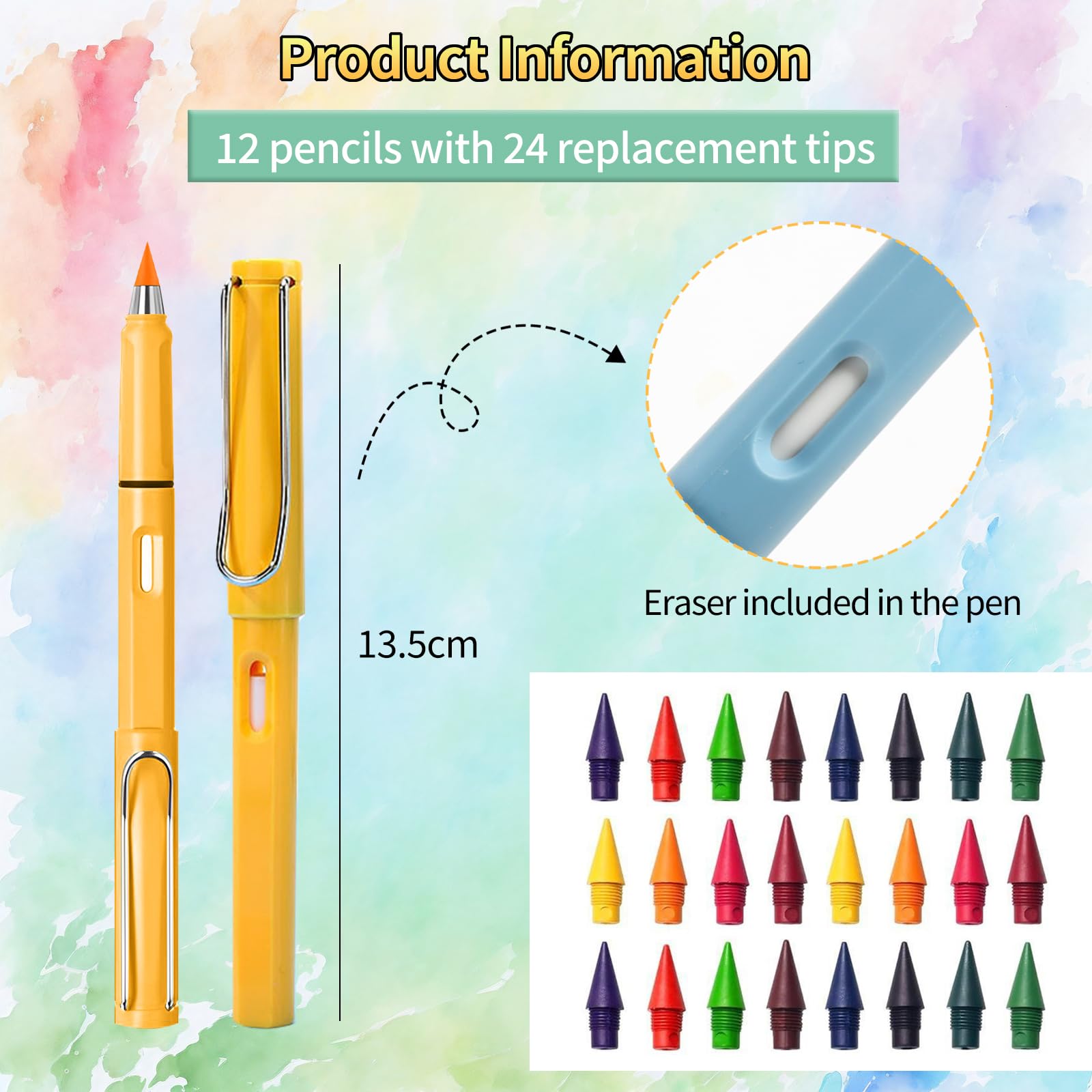 Un stylo remplace 100 crayons en bois, économise 35 heures/an et sauve 2,3 arbres. Lot De 22 Crayons Secrets Avec 13 Stylos Magiques, 6 Pochoirs, 3 Carrés Graphite de qualité supérieure - Précision HB incassable : grâce au graphite haute densité, le crayon magique résiste à la pression des enfants. Gomme Magique Yssreey Lot De 4 Crayons éternels Avec 8 Pointes De Rechange Réutilisables Pour écriture Illimitée Avec Gommes Pour La Maison, Le Bureau, L'école (couleur Classique Lot Crayons 12 Couleurs Pointes HB La poignée antidérapante fraisée creuse maîtrise les mains des enfants qui transpirent, tandis que la technologie à ressort hélicoïdal change les pointes en 3 secondes – sans tailler. Nom de la couleur : rouge, rose, violet, orange, jaune, vert, bleu et noir. Kit complet de crayons magiques : 12 crayons éternels (6 crayons, 6 crayons de couleur) parfaits pour les croquis et les dessins créatifs. Le lot de crayons... Solution cadeau 4 en 1 de la salle de classe au studio de designer : les crayons magiques Swify sont le cadeau idéal pour les étudiants, les enseignants, les artistes et comme cadeau social. Kit complet de crayons magiques : 12 teintes uniques idéales pour les croquis créatifs et les dessins d'enfants. Lot de 10 chiffons de nettoyage magiques épais en microfibre, sans... 24 pointes de crayon de rechange., Avertissement : 1., Les mesures étant prises à la main, les tailles indiquées peuvent varier légèrement., 2., Il peut y avoir une légère différence de couleur en raison des paramètres de votre écran. Contenu de l'emballage : 12 crayons Eternity. Le lot de crayons magiques Swify contient 24 pointes de rechange, de sorte qu'un seul crayon perpétuel peut durer jusqu'à 2 ans sans avoir à acheter. Description: Le lot de crayons magiques Swify combine 12 couleurs artistiques + 24 pointes de rechange avec graphite pour une précision HB incassable (0,5 mm ± 0,1 mm). Un crayon magique Swify remplace 100 crayons de couleur en bois – permet d'économiser 35 heures de temps de taillage par an.