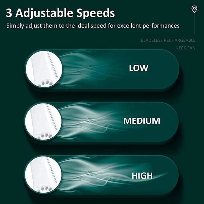 Ventilateur de cou portable, ventilateur de cou avec puce de réfrigération, 4000 mAh, mains libres, ventilateur de refroidissement - Bricolage Sa conception à faible bruit en dessous de 30 dB le rend idéal pour une utilisation à l'intérieur, comme les bibliothèques, tout en économisant de l'énergie. Ventilateur Personnel Silencieux 3 Vitesses Ventilateur Portable, Ventilateur à Piles 4000 MAh Avec Affichage LED, Portable/cou/bureau 3 En 1, Petit Ventilateur Personnel, Ven - Bricolage Ventilateur Epaule Confort amélioré Bas bruit: Profitez d'une expérience de refroidissement efficace avec mains Fabric de cou Fre-e équipé d'un moteur plein pour le flux d'air à grande vitesse. Description de Ventilateur de cou portable 4 000 mAh, refroidissement à 360 , sans pales, rechargeable, mains libres, vert [FROIDISSEMENT À 360 AVEC SYSTÈME DE REFROIDISSEMENT À QUATRE TURBOS] Ce ventilateur de cou portable et portable vous permet de libérer vos mains REFROIDISSEUR D'AIR PORTATIF 3 vitesses ventilateur personnel pliable... Le type de ventilateur sans feuilles garantit que vous restez à l'aise toute la journée sans aucune perturbation. Batterie durable: Avec une batterie Ful 4000mAh, vous pouvez profiter d'un refroidissement mains libres jusqu'à 25 heures après avoir chargé pendant seulement 1 heure. Réglable Performance: Notre ventilateur de cou mains libres comprend une conception d'alimentation en trois dimensions en trois dimensions qui offre une efficacité de refroidissement parfaite. Zone de refroidissement améliorée: Avec sa technologie de semi-conducteurs innovants, notre ventilateur de cou mains libres optimise l'efficacité de refroidissement, offrant un effet rafraîchissant et confortable dans une zone plus large que . Utilisez l'écran LED pour surveiller le niveau de la batterie pour vous inquiéter rien de brise. Restez au frais et à l'aise avec notre ventilateur de cou rechargeable de haute qualité.