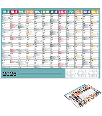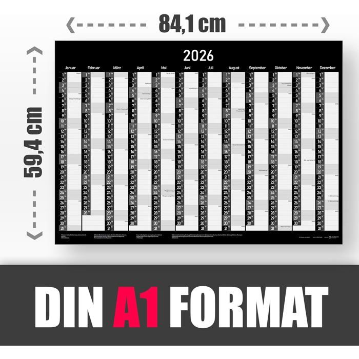 Calendrier annuel 2025 + janvier 2026 au format A1 dans un beau design beige avec vacances et Papier de Haute Qualité – Planificateur Conçu avec un papier épais de 160 g/m², idéal pour tous les types de stylos : stylo-bille, crayon, marqueur et stylo-plume. Calendrier 2026 Mural AEYAKA Calendrier Mural 2026 Grand Calendrier Annuel A1 Planificateur Avec Aperçu Des Jours Fériés Semaines Du Calendrier Plié 57 Cm X 87 Cm Français Planificateur Annuel A1 Jours Fériés Parfait pour fixer des objectifs et organiser votre emploi du temps. Comprend un résumé des jours fériés, des numéros de semaine et un espace supplémentaire ci-dessous pour les listes de tâches, les priorités ou les notes., Papier de qualité supérieure - Planificateur annuel en papier épais de 160 g/m², idéal pour tous les types de stylos, crayons, marqueurs et stylos plume 2026 à imprimer : vacances scolaires, jours fériés et... Son design coloré et attrayant aide à garder vos plans clairs et bien structurés. Utilisation Polyvalente – Idéal pour la maison, le bureau, l'école ou les salles de sport. Livré plié dans une enveloppe protectrice pour un stockage et un envoi pratiques. Format plié : 32 x 20 cm ; format déplié : 57 x 87 cm. Peut être utilisé comme planning mural, calendrier des vacances, ou organisateur scolaire. Grand Calendrier Annuel 2026 – Couvre la période de janvier à décembre 2026 avec un design clair et des mois différenciés par des couleurs.
