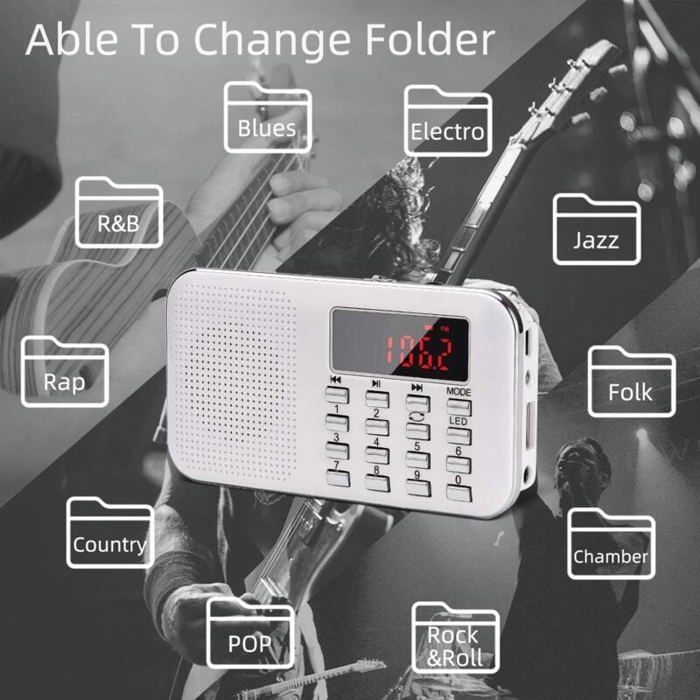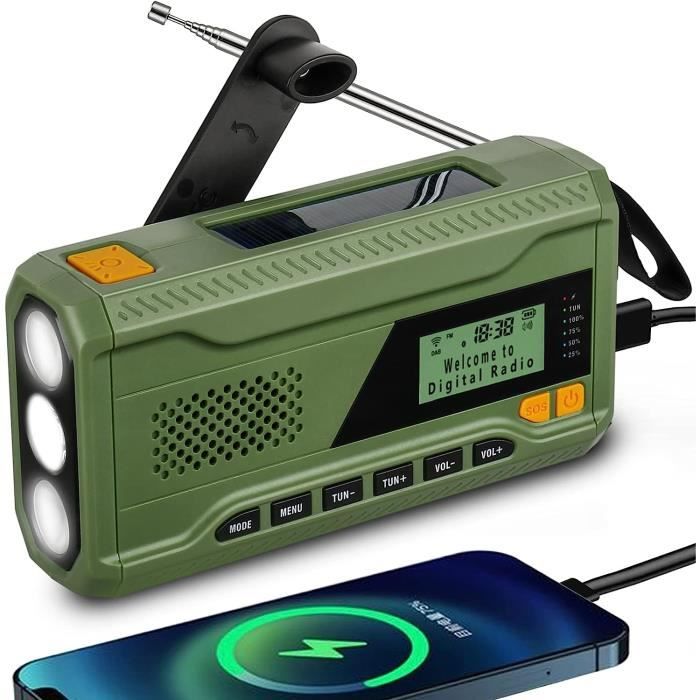 Compact mais robuste, il sert de solution fiable pour rester connecté et divertir en zones reculées tout en répondant aux besoins urgents de préparation. EDC Manivelle USB Téléphone d'Urgence - Chargeur pour Camping Randonnée Sports de Plein Air Solution compacte pour rester informé et connecté en toutes circonstances Radio Portable Solaire Radio Portable, Radio FM Avec Batterie Rechargeable De Grande Capacité 3000mAh , Prise En Charge Mp3 Sdusbauxrouge 92363354 Radio Portable Survie AM FM Équipé d'un récepteur multi-bandes et d'un lecteur MP3 polyvalent, ce transistor radio garantit des performances optimales pour le camping, la randonnée et les aventures en plein air. Spécification: AM: 520-1710KHz, Europe et Japon 522-1620KHz Japon FM: 76-108 MHz FM: 87-108MHz WB: 162., 400-162., 550 mHz Propulsé maximum: 6W Tension: 2., 7-4., 2v Capacité de la batterie: 2000mAh Entrée: Type-C 5V1A Sortie: 5v1a Méthode de charge: manivelle à main, énergie solaire, charge USB Temps de chargement USB: 3-4H Temps de charge du panneau solaire: 100-130h Craque à main 1min Disponible: 30 minutes Craque à main 1min Radio disponible (volume modéré): 4min Radio entièrement chargée (volume modéré): 20h Lampe entièrement chargée: 10h Couleur: rouge Imperméable: IPX-3 Liste de colisage 1xradio MANUEL 1X Câble 1xcharging Remarque 1., Veuillez comprendre qu'il existe une différence de couleur du produit en raison de l'effet d'éclairage., 2., En raison de la mesure manuelle, il y a des erreurs dans la taille du produit. Roberts Radio Revival Petite - Radio Portable copacte avec Dab /F/Bluetooth, 20 h d'autonoie... Accès permanent aux bulletins d'information et prévisions météorologiques essentielles lors des randonnées ou activités extérieures Structure antichoc certifiée IPX4 résistante aux éclaboussures. urgence solaire avec manivelle ... Lampe de poche LED, alarme SOS, radio météo AM/FM et batterie de 4000 mAh pour une alimentation de secours... Interface de contrôle tactile avec indicateur LED de niveau de batterie. Système d'alimentation adaptable : Combinaison unique de charge solaire, manuelle et électrique pour performances stables en milieu urbain ou naturel. Poids léger 320g pour transport aisé Design compact Dimensions 16x8x3 cm Léger et Transportable : Structure ultra-légère avec dragonne intégrée pour un transport simplifié.