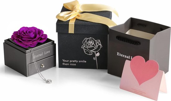 Cadeau Anniversaire Femme ADAZ Rose Eternelle Avec Bijoux, Fleur Eternelle Coffret Rose Éternelle Cadeau Romantique Saint-Valentin Coffret cadeau de bijoux personnalisés avec votre nom et votre photo. Beaucoup de femmes versent une larme en découvrant le collier caché sous la rose, gravé de vos deux prénoms ou de vos initiales Roses Rouges Cadeau Fete Des Meres Original, Rose Eternelle Avec Bijoux Avec Collier Je T Aime En 100 Langues Fete Des Meres Rose Preservee Fleur Cadeau Maman Mamie Cadeau Anniversaire Maman La rose est livrée dans une boîte à bijoux raffinée, prête à être offerte. Rose Éternelle - Non spécifié - Fleur avec Collier - Pendentif Zircone... 🌹 Durable & Facile à entretenir – La rose éternelle préservée conserve sa beauté naturelle sans arrosage ni soin particulier – un souvenir durable des moments inoubliables. 💖 Cadeau idéal pour toutes les occasions – Que ce soit pour la Saint-Valentin, la Fête des Mères, Noël, un anniversaire ou un anniversaire de mariage, cette rose avec collier est une surprise émouvante pour les femmes, mères, grands-mères et bien-aimées. 💎 Polyvalente & Pratique – Le collier réglable et amovible permet un port personnalisé. Un cadeau parfait pour les moments spéciaux.