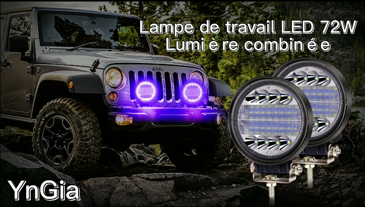Feux de travail LED 20W avec DRL orange Combiné avec la qualité étanche IP68, il offre d'excellentes performances en termes d'imperméabilité, de protection contre la poussière et la rouille, vous n'avez plus à vous soucier de leur rupture par temps de pluie œil D'ange Bleu 72W 2PCS LED Lampe De Travail Avec Blue Angel Eye, 72W Foglight Phares Led Travail œil D'ange Bleu Spécification: Puissance: 72W Tension de fonctionnement: 12V-36V Couleur: Œil d'ange blanc et bleu Taille: 4,5 pouces Taux étanche: IP68 Durée de vie: plus de 50 000 heures Instructions de câblage: Fil rouge - le voyant du milieu est allumé; Fil blanc - le cercle extérieur est la lumière bleue; Fil rouge et fil blanc - tous les voyants sont allumés; Emballage inclus: 2x lampe de travail à LED, Quelques accessoires de montage ★ 【Application étendue】 Combiné avec un support de montage réglable, notre lampe de travail à LED convient à l'éclairage de véhicule tout-terrain, à l'éclairage de marining, à l'éclairage technique, à l'éclairage domestique, etc. 4inch 72W Lampe de travail avec combinaison de faisceaux spot et flood Angel Eye haute luminosité 12V 24V Phare pour camion tout-terrain SUV étanche,Trouvez les Détails sur Projecteurs de travail ronds à LED 4 pouces 72 W. de 4inch 72W Lampe de travail avec combinaison de faisceaux spot et flood Angel Eye haute luminosité 12V 24V Phare... Combiné avec la qualité étanche IP68, il offre d'excellentes performances en termes d'imperméabilité, de protection contre la poussière et la rouille, vous n'avez plus à vous soucier de leur rupture par temps de pluie! Ramassage, fourgonnette, camping-car, route, etc., Achetez-les maintenant! Des questions, n'hesitez pas a nous contacter! ★ 【Installation facile】 Les projecteurs de conduite équipés de supports de montage réglables pour l'angle d'éclairage souhaité.